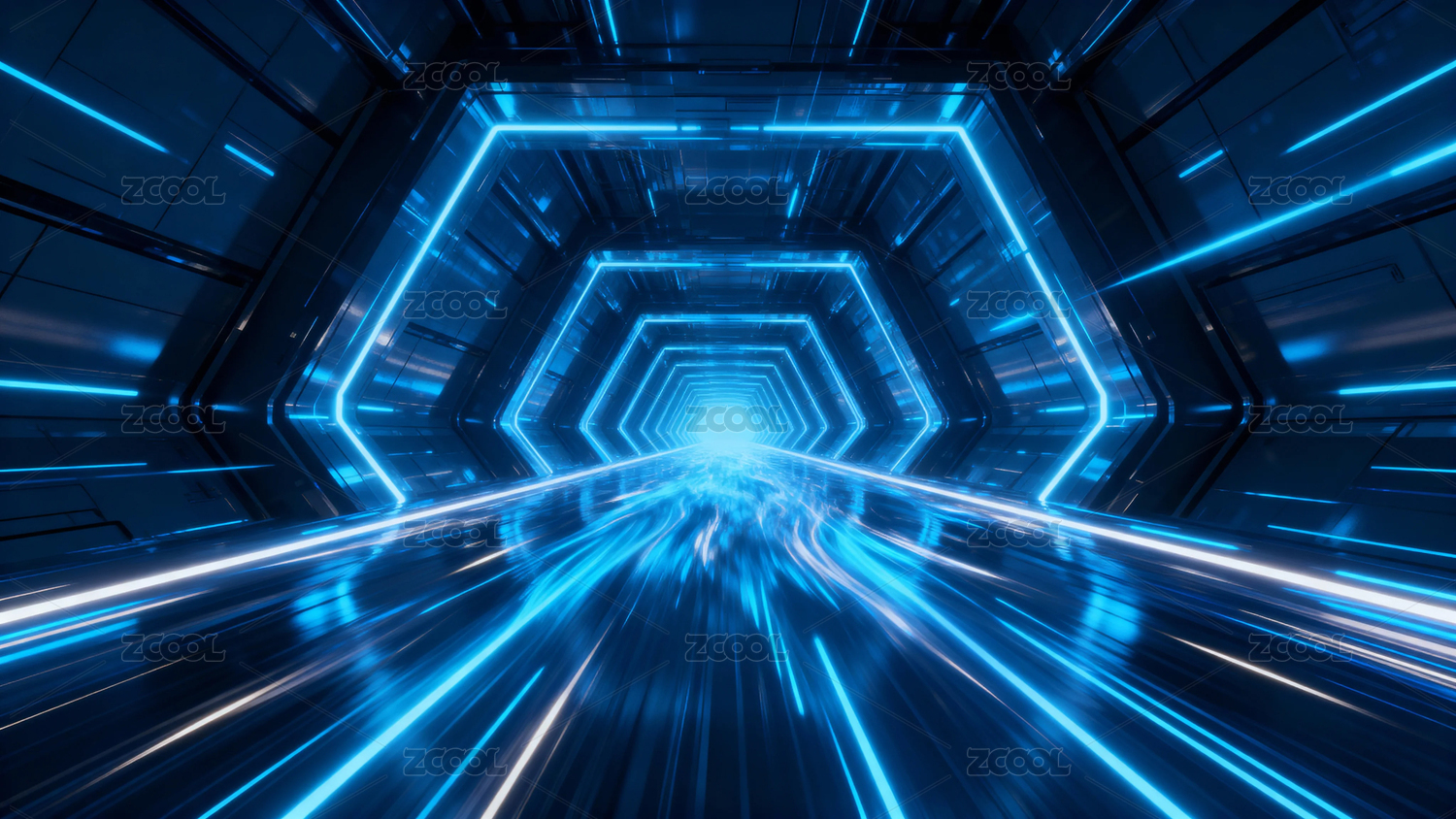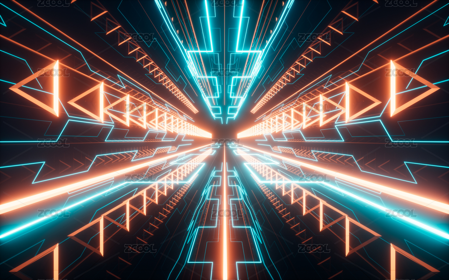 反射,光线,蓝色,橙色,未来,灯光,科技,空间,隧道,流动