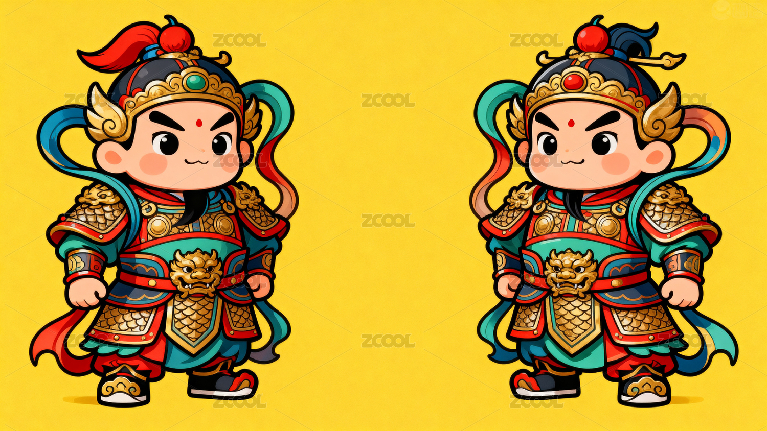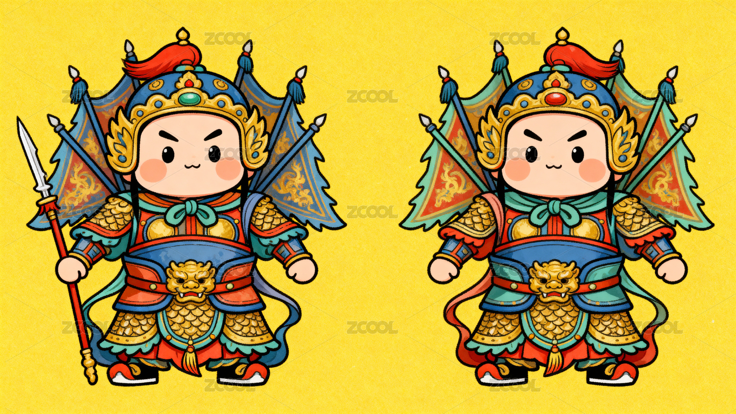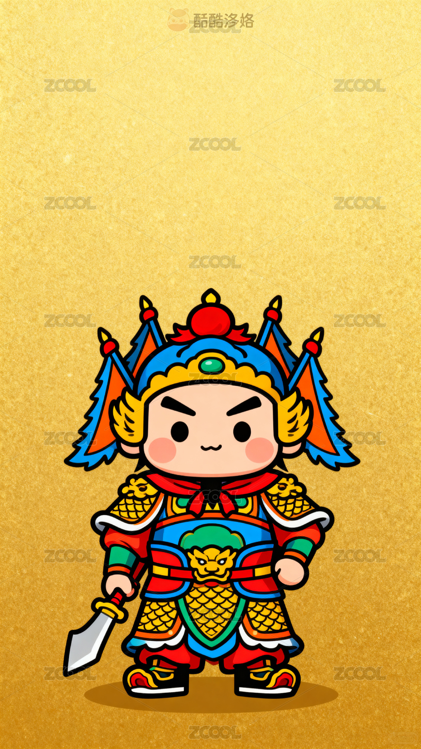 蓝色,红色,笑容,背景,金色,图案,服饰,橙色,武士,头饰