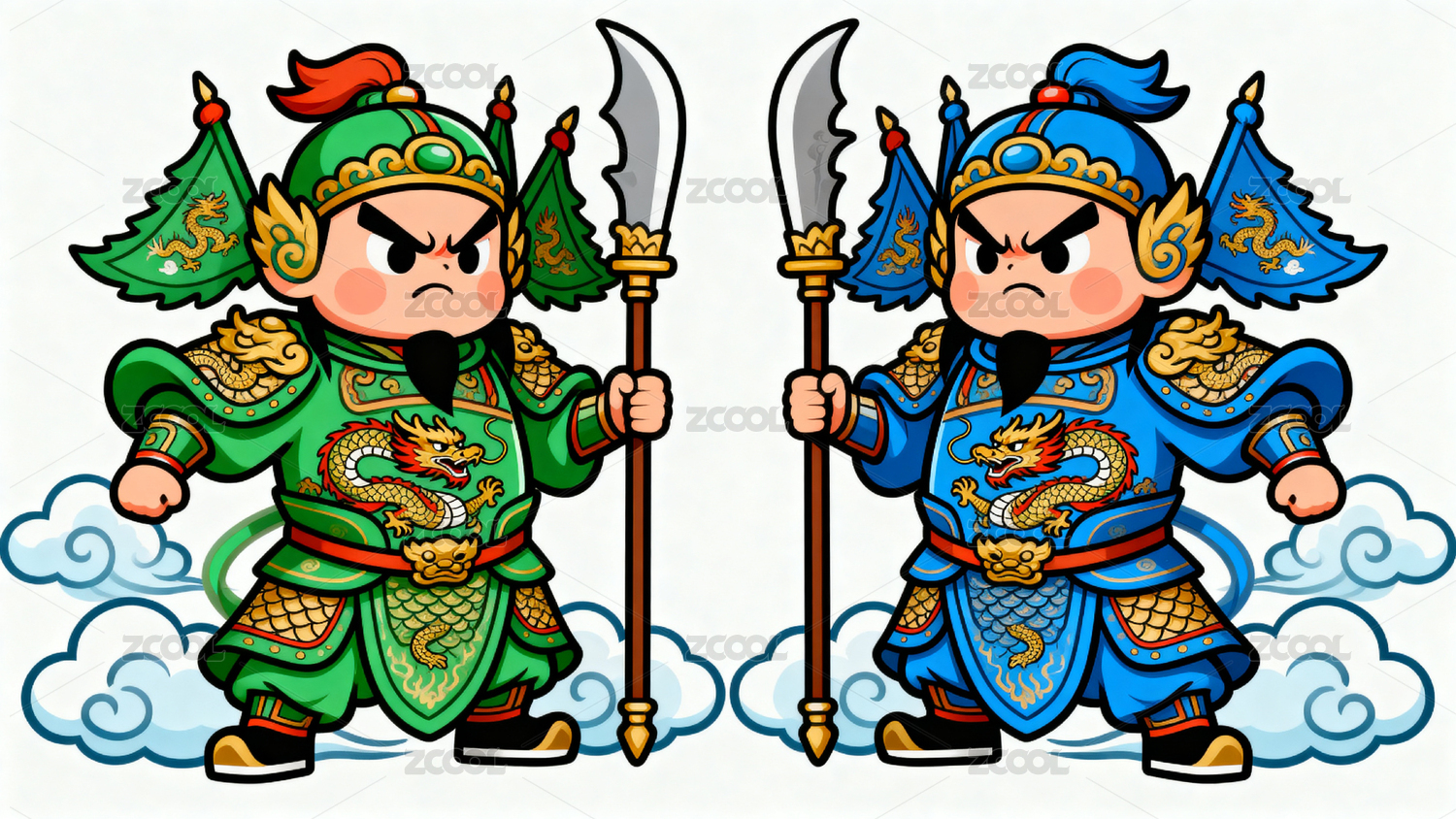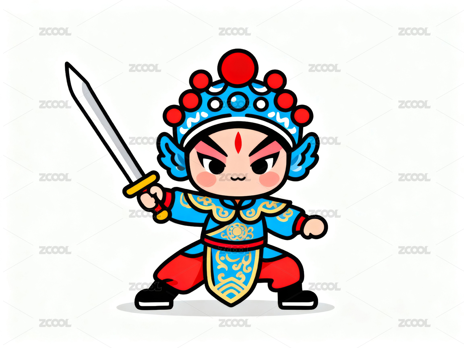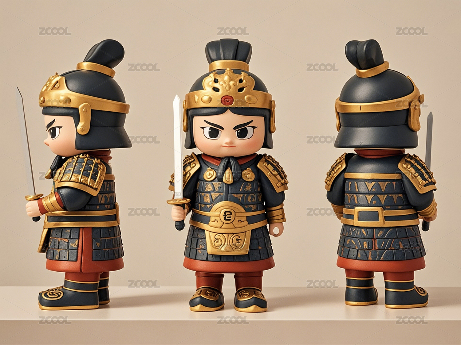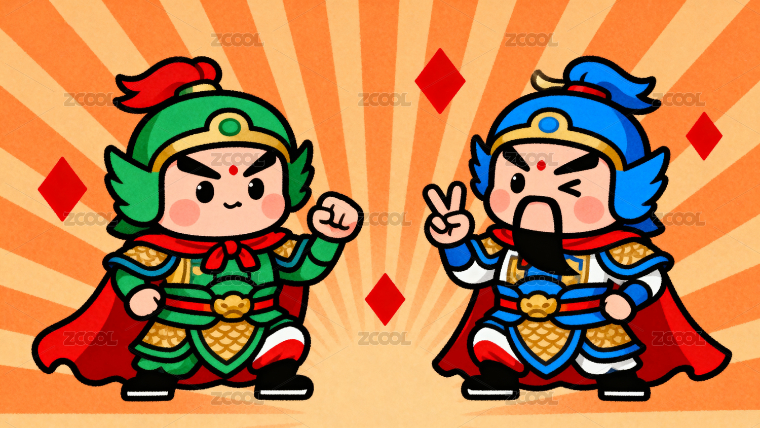蓝色,红色,笑容,背景,金色,图案,服饰,橙色,武士,头饰