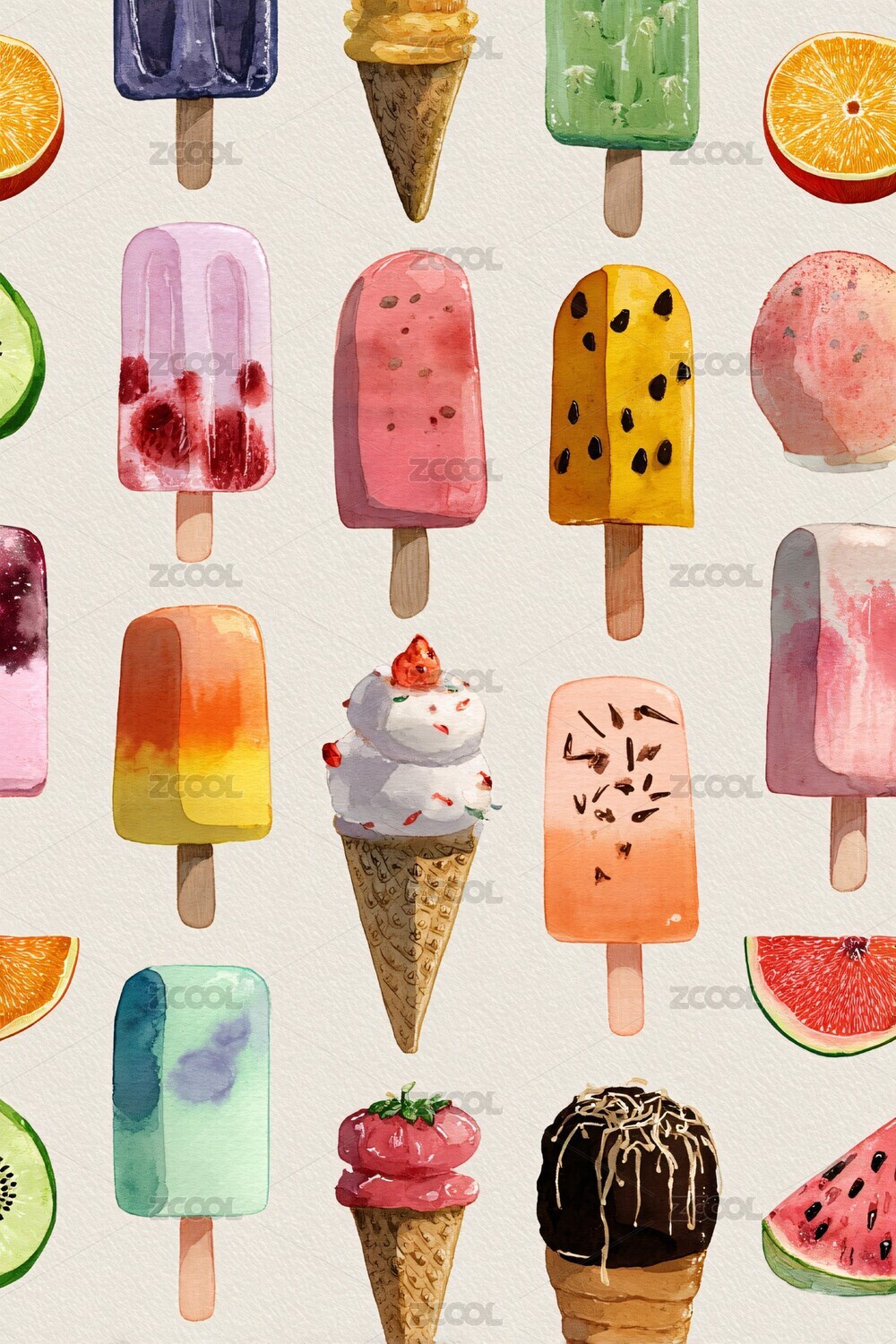 冰淇淋和冰棒的可爱图案