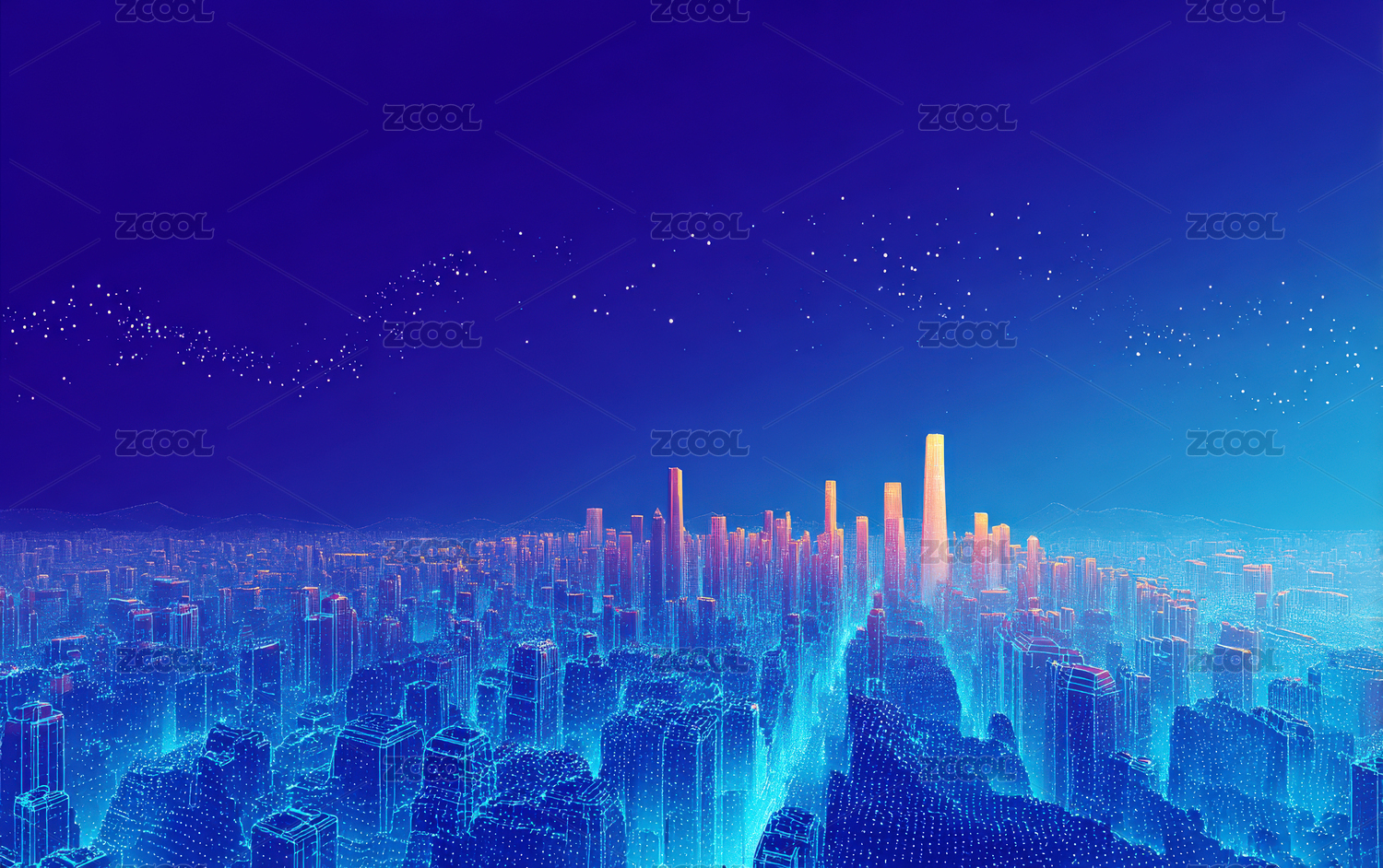 蓝色,科技,未来,现代,建筑,灯光,夜景,光点,流动,数字