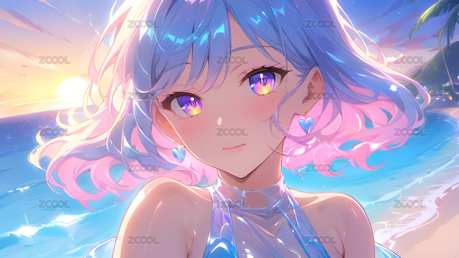 蓝发少女水中凝视