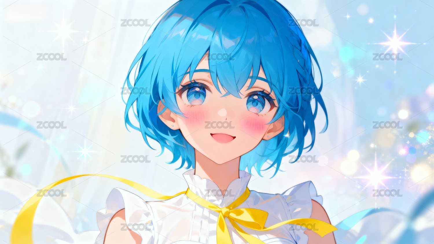 蓝发少女闪耀微笑