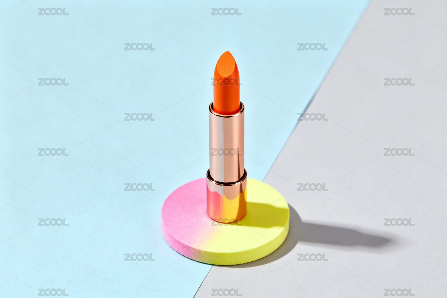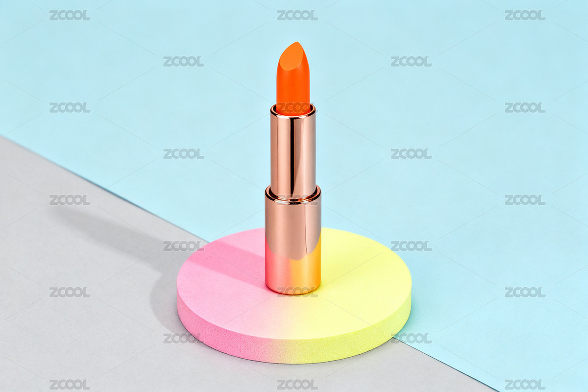 橙色口红静置于多彩背景之上