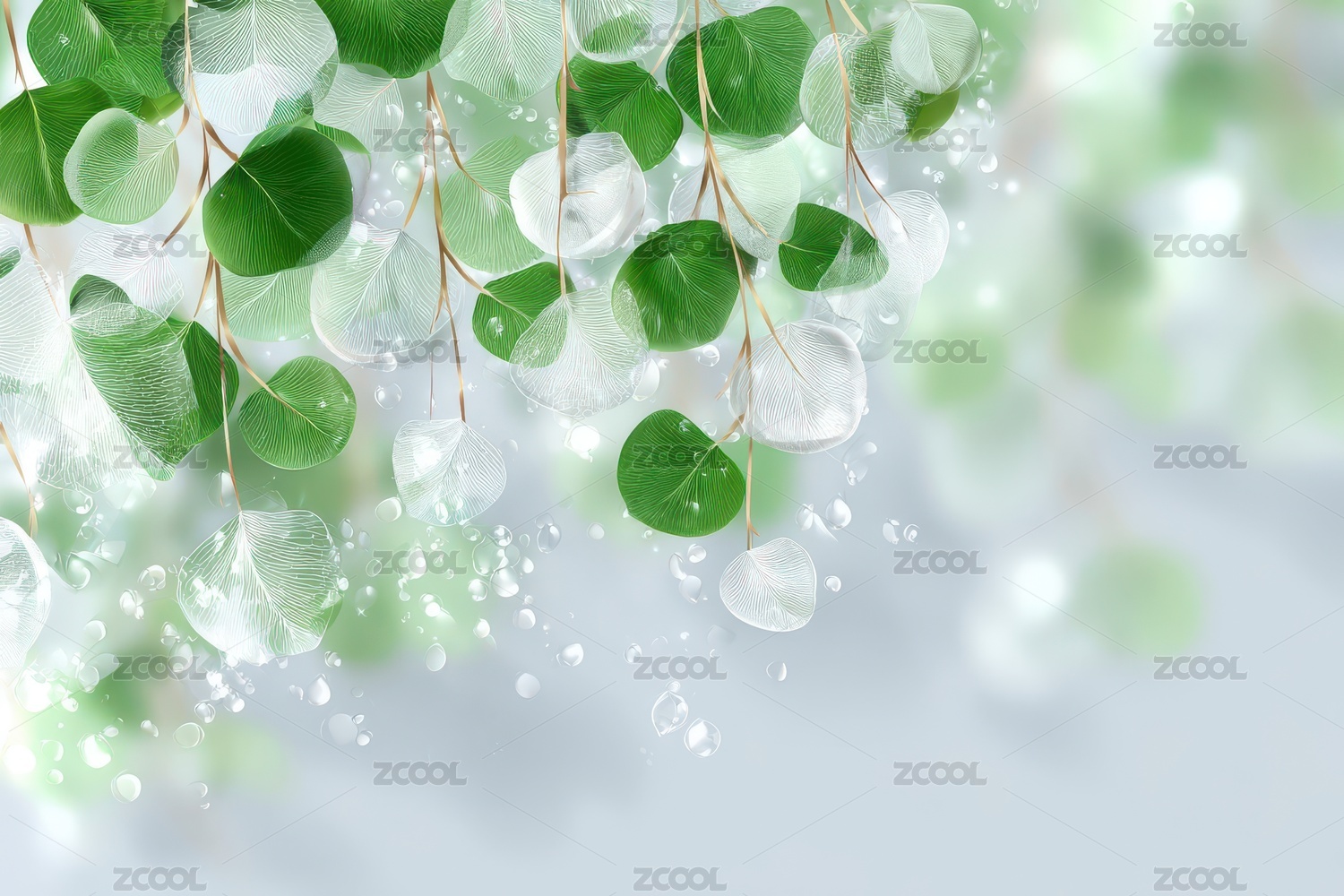 晶莹露珠与清新绿叶的梦幻组合