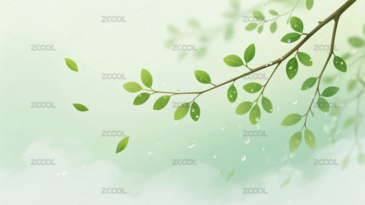 清新绿叶树枝背景图