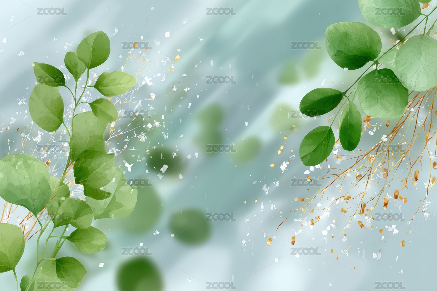 清新绿叶与金色飘落的梦幻场景