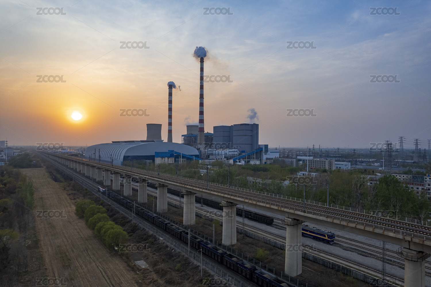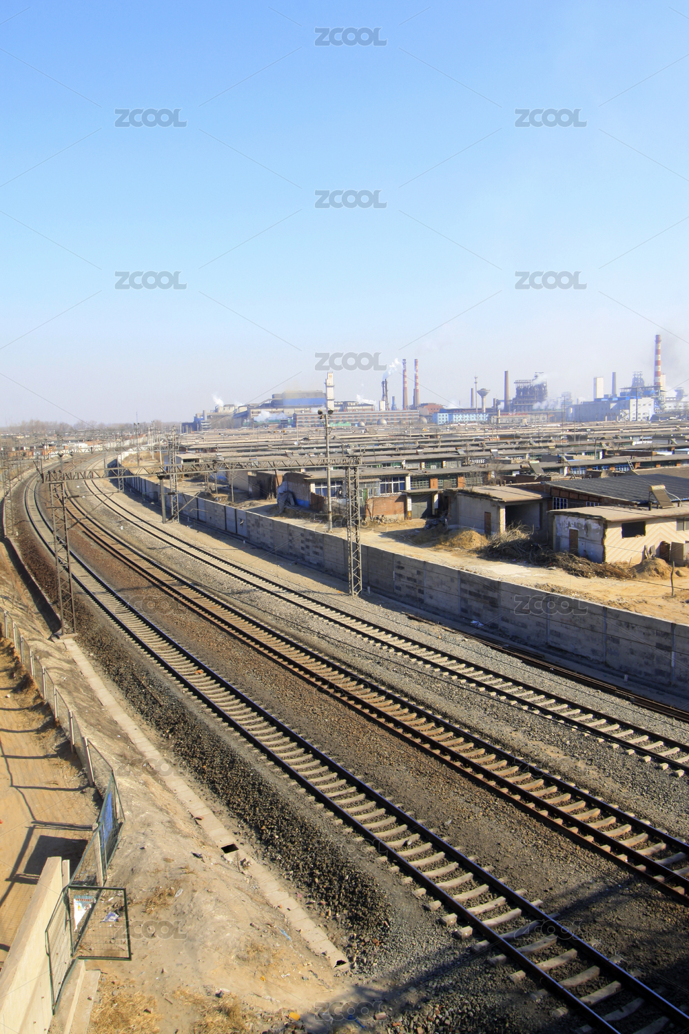 石油工业区工厂和高架桥铁路弯道上高铁列车