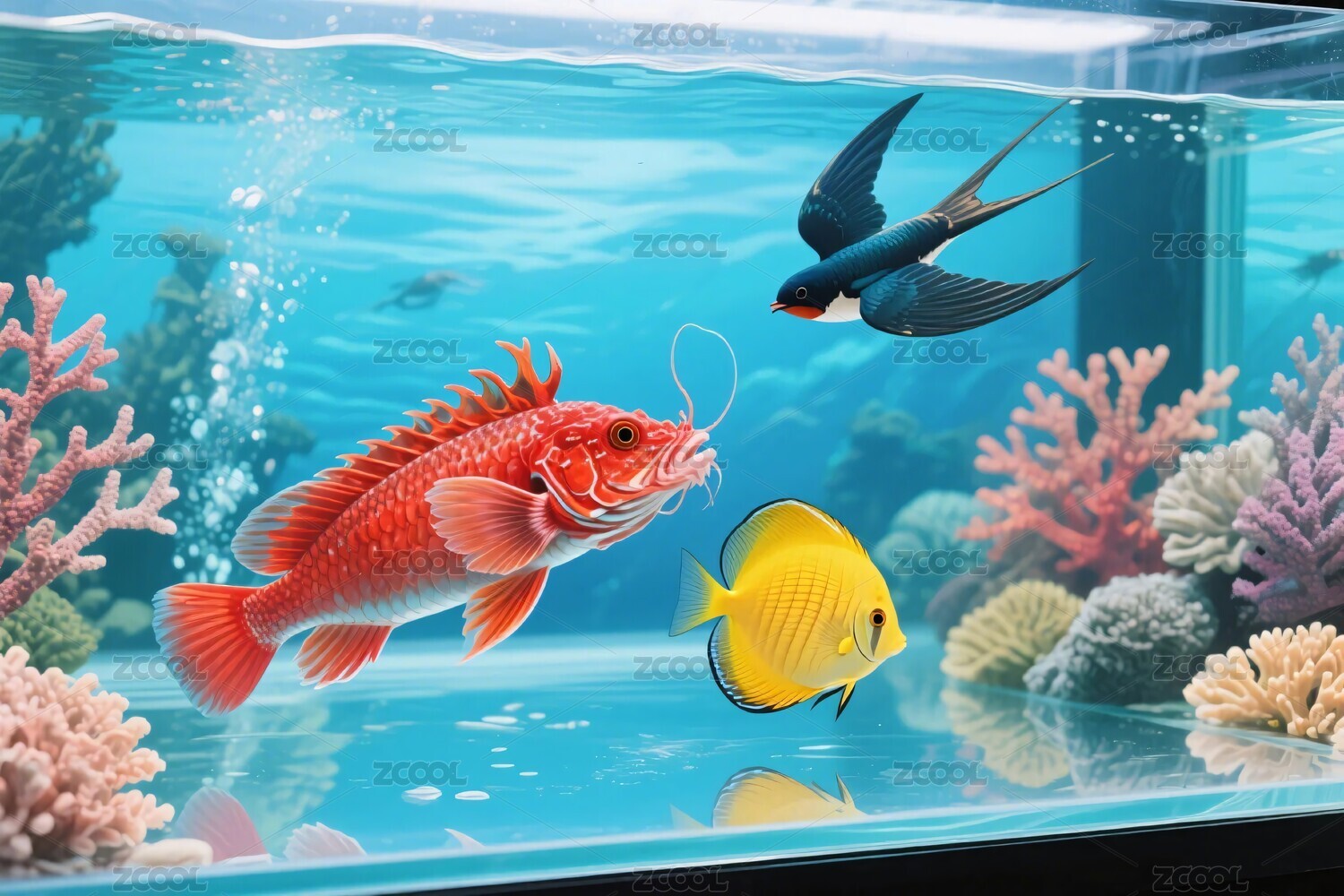 色彩斑斓的热带鱼在珊瑚礁中游动