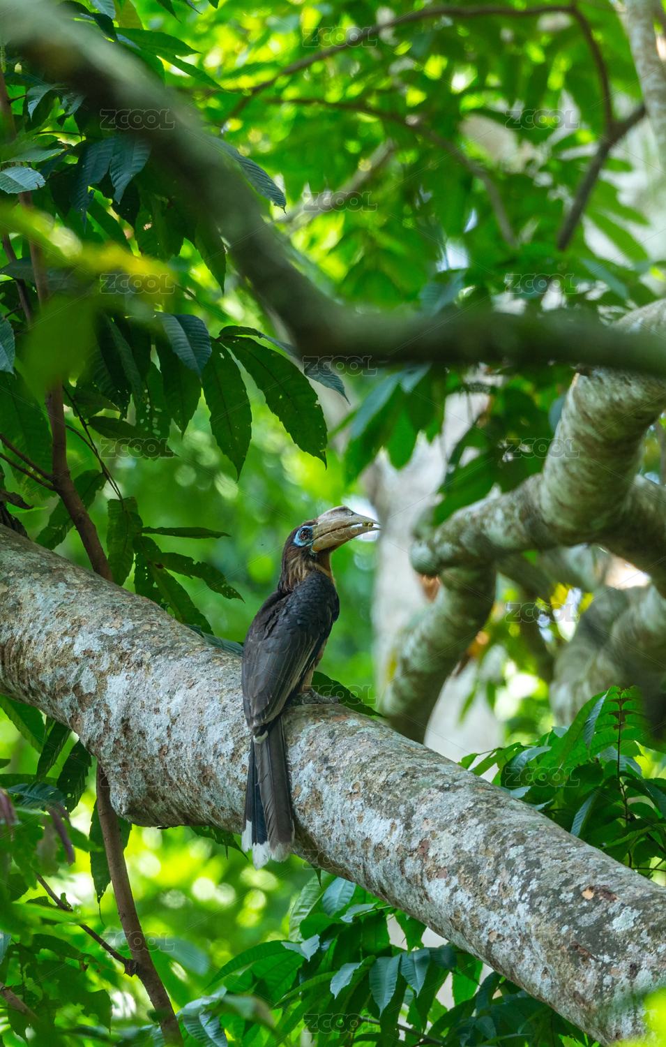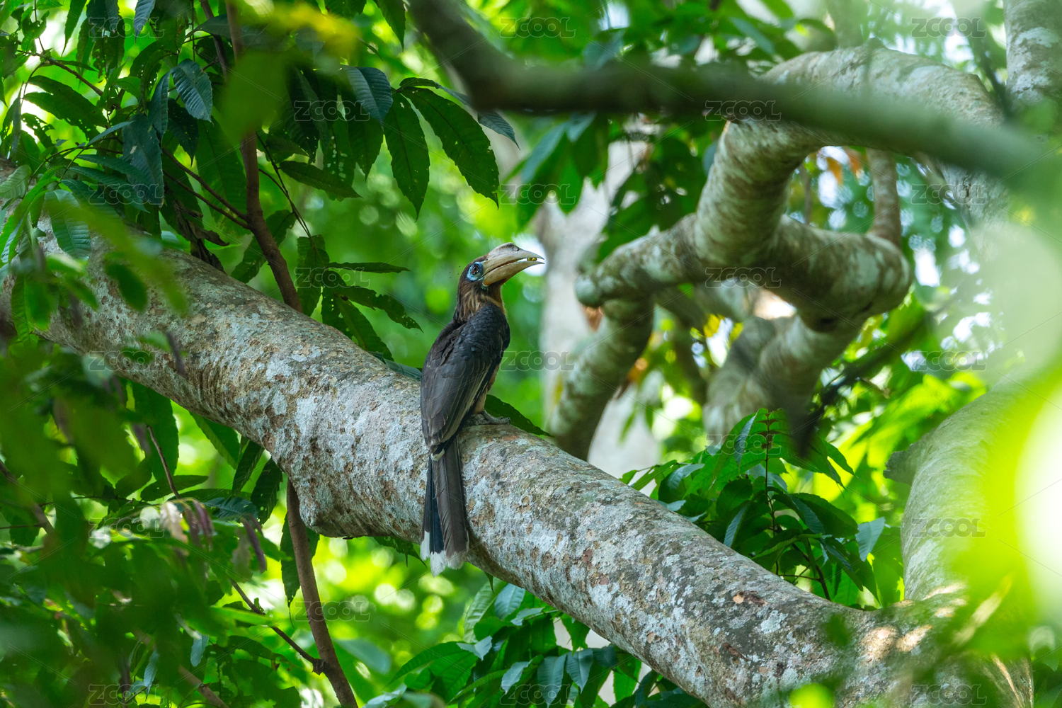 生活在热带雨林森林里的珍稀锈颊犀鸟