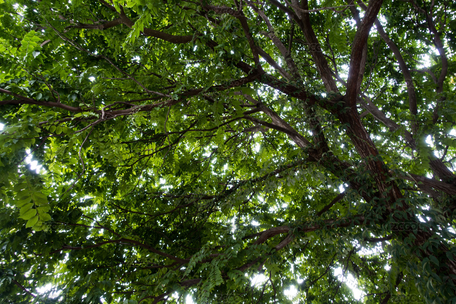 高大乔木树冠枝叶仰拍