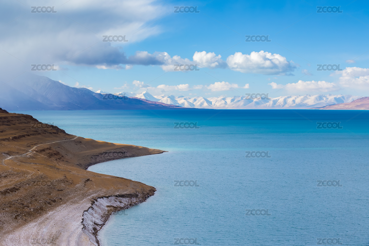 中国西藏那曲尼玛县当惹雍措湖东岸的湖岸线