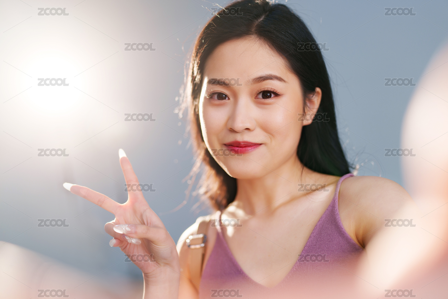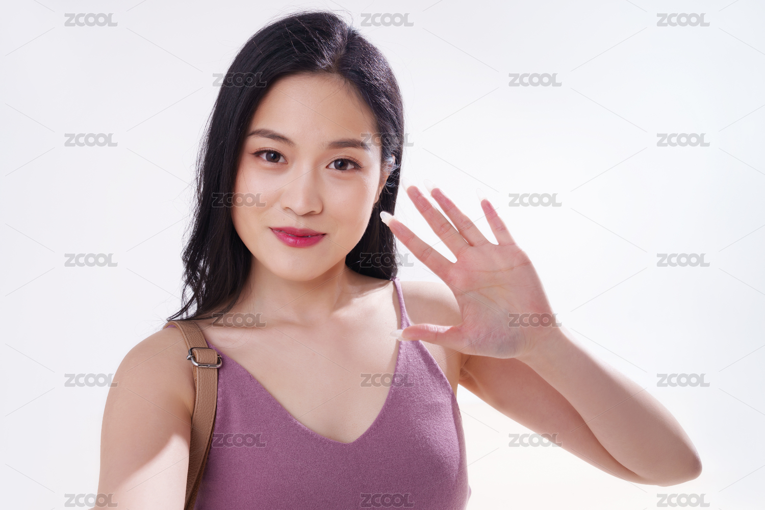 纯色背景前的年轻亚洲女性美容