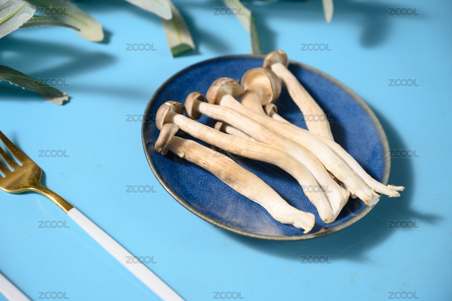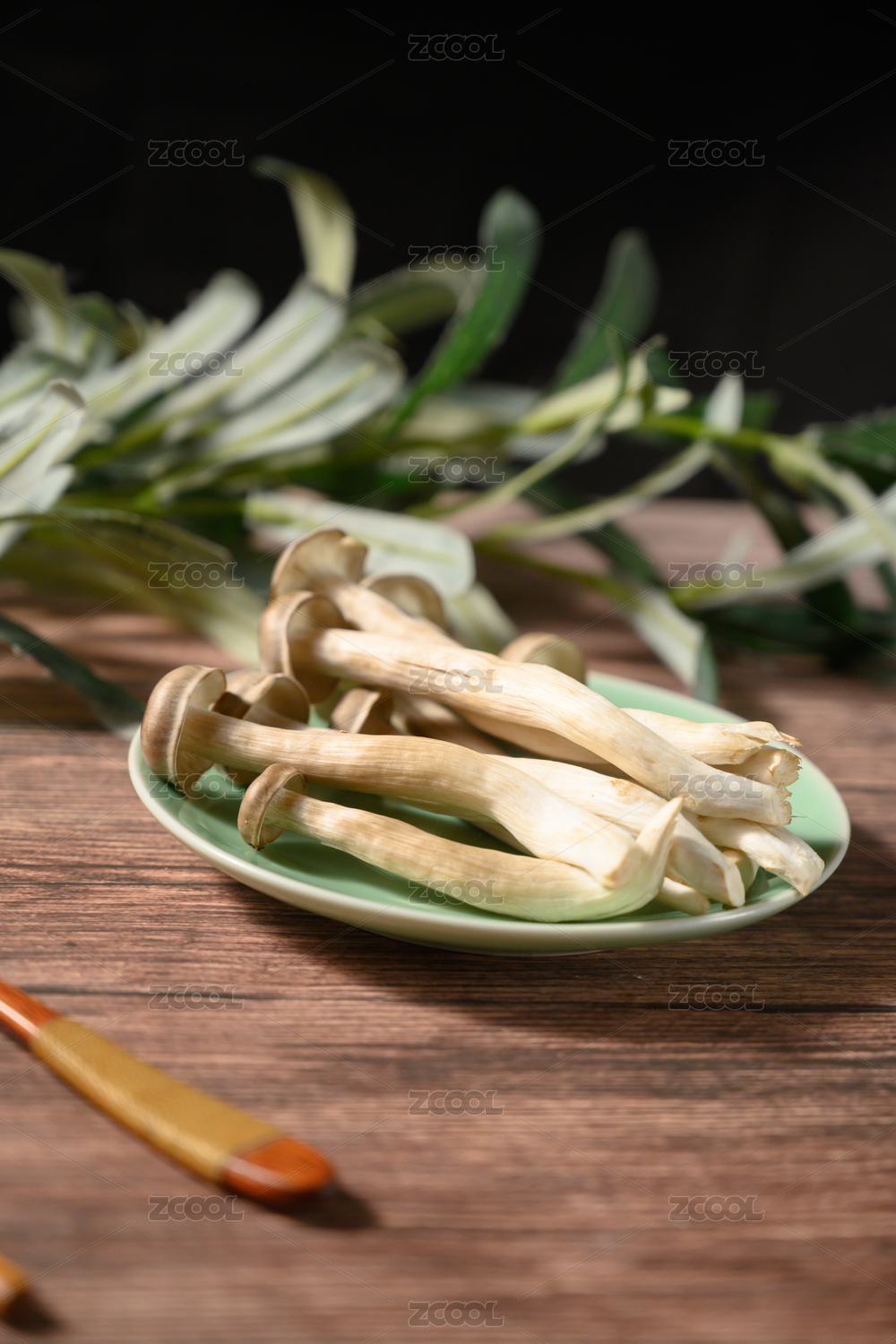 桌面上的盘子里的美味可口的新鲜鹿茸菇