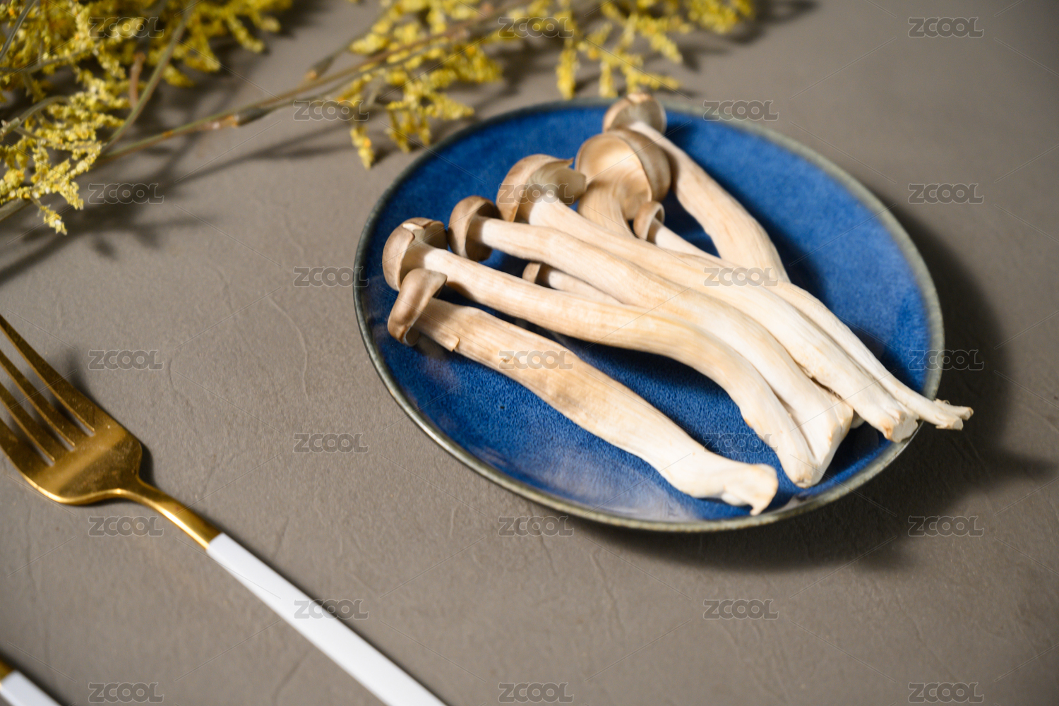 桌面上的盘子里的美味可口的新鲜鹿茸菇