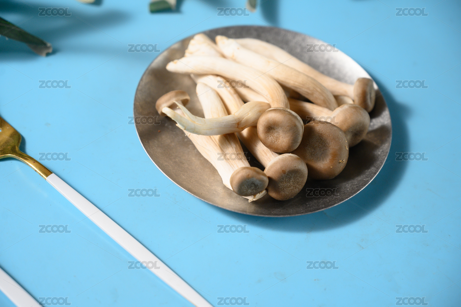 桌面上的盘子里的美味可口的新鲜鹿茸菇