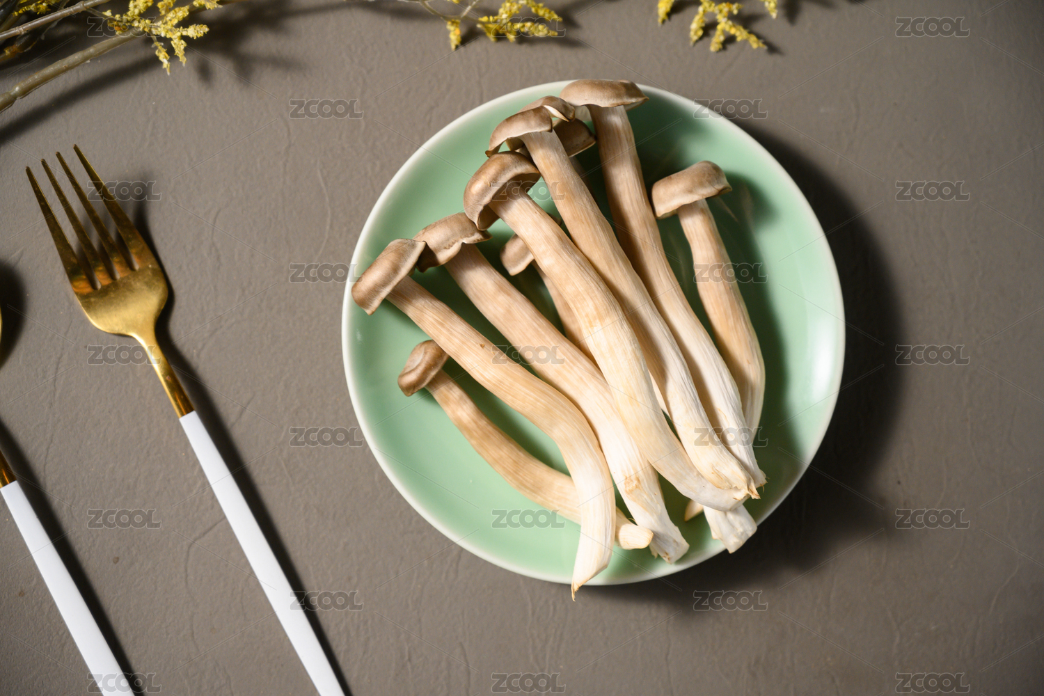 桌面上的盘子里的美味可口的新鲜鹿茸菇