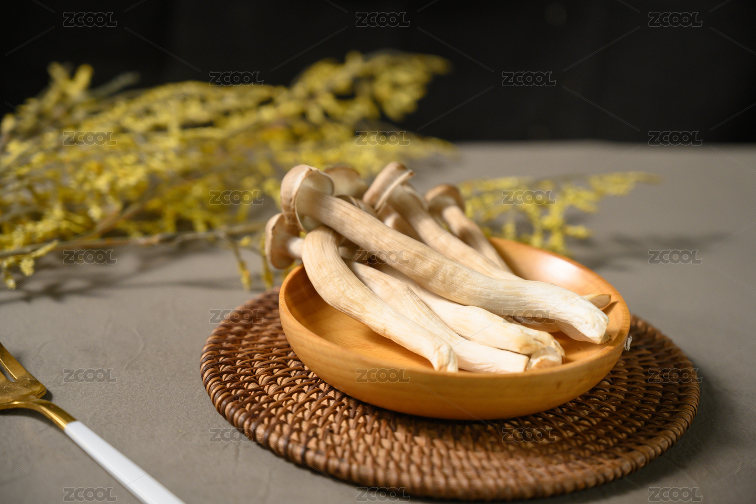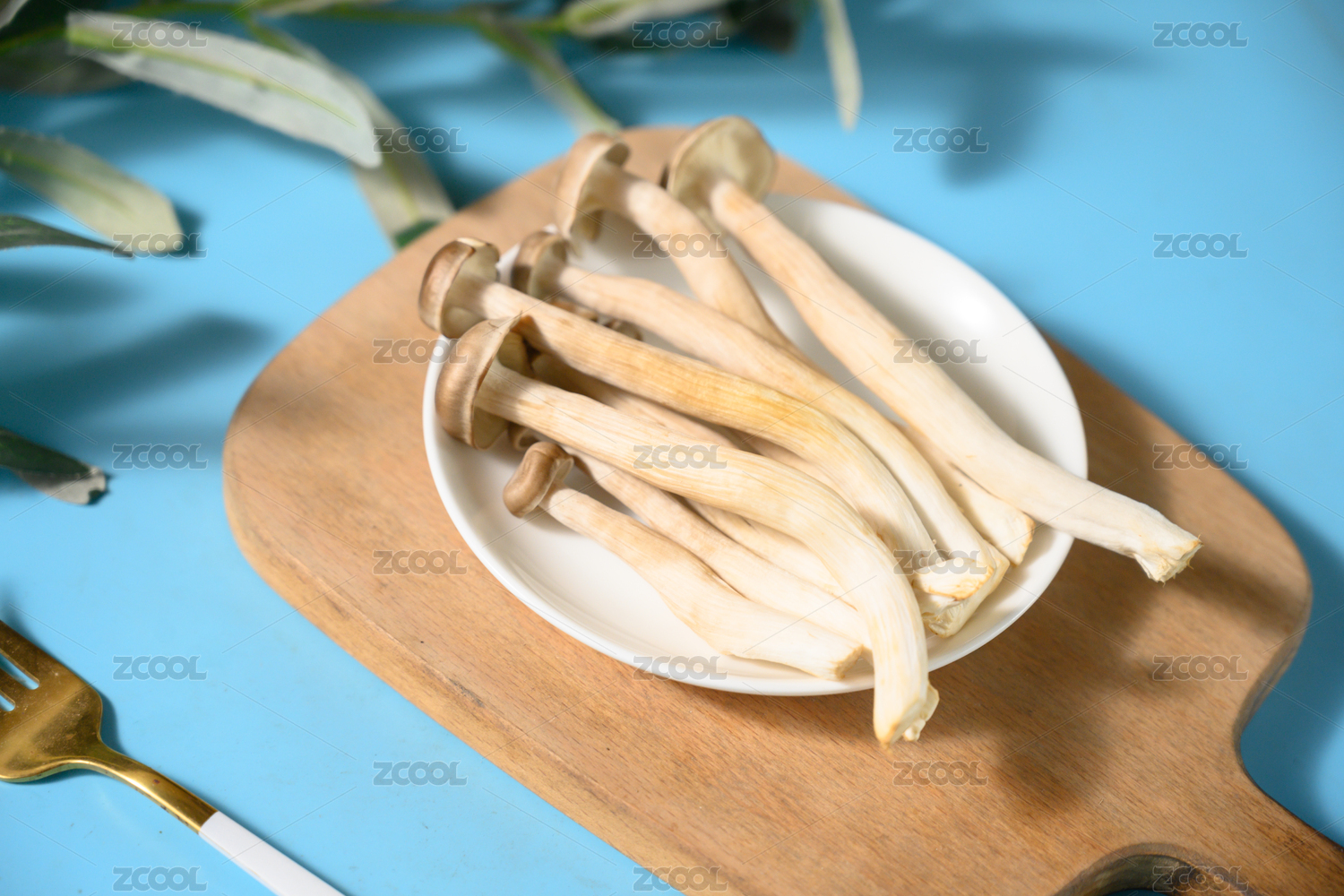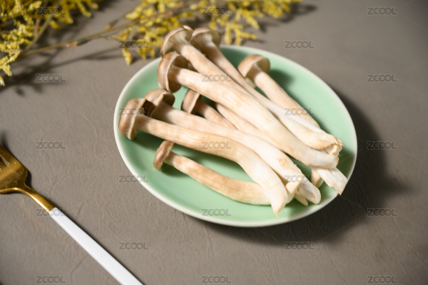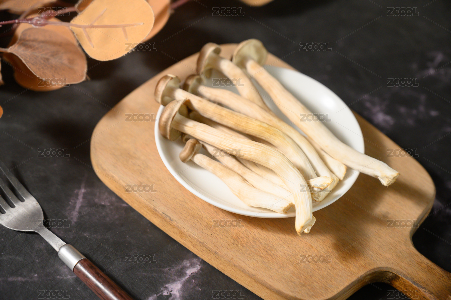 桌面上的盘子里的美味可口的新鲜鹿茸菇