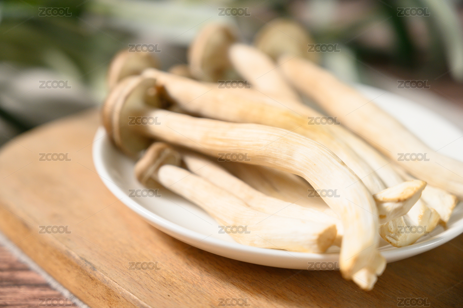 桌面上的盘子里的美味可口的新鲜鹿茸菇