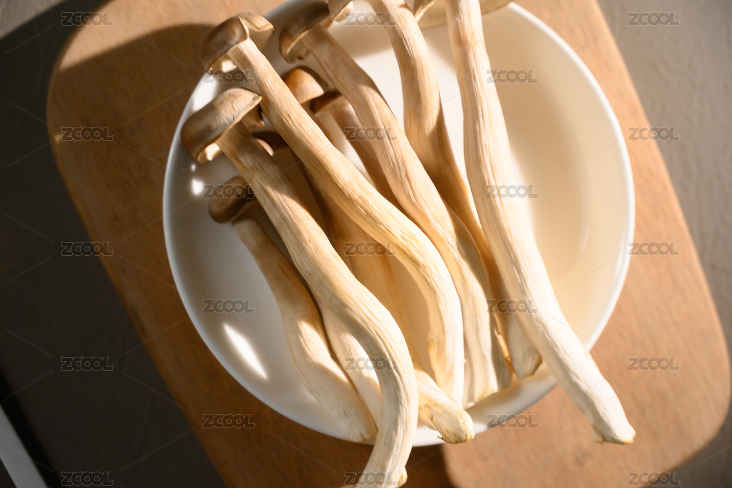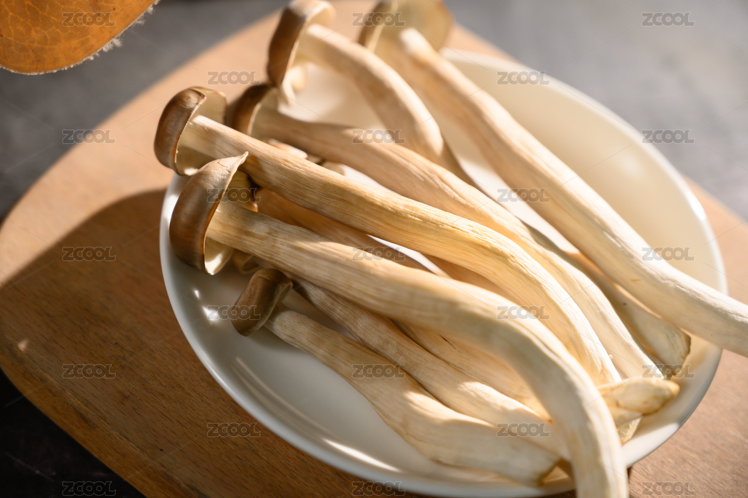 桌面上的盘子里的美味可口的新鲜鹿茸菇
