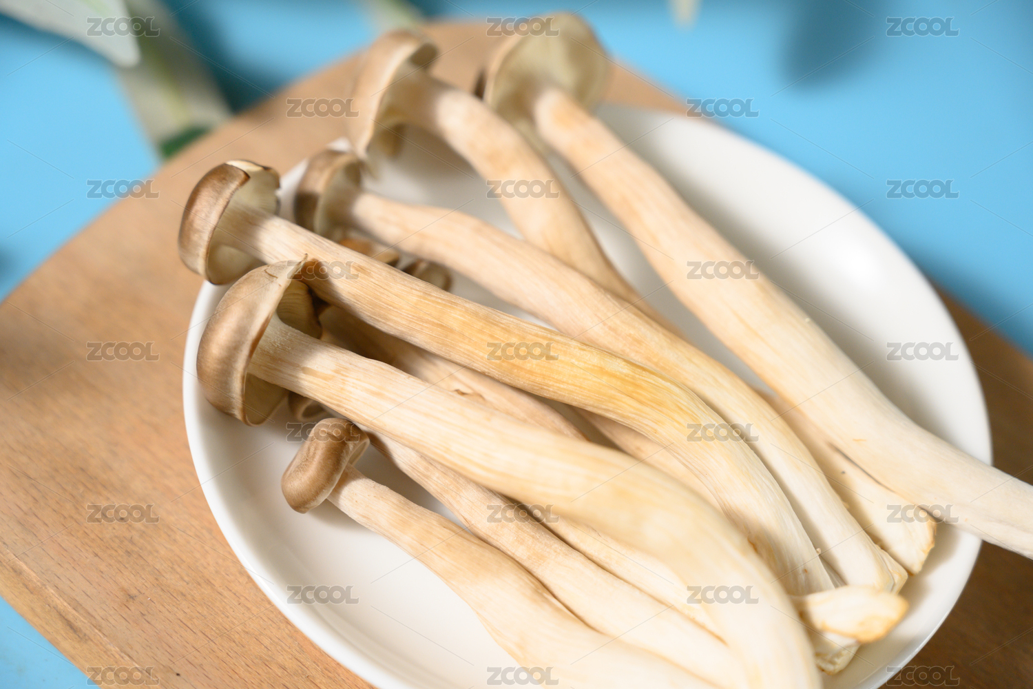 桌面上的盘子里的美味可口的新鲜鹿茸菇