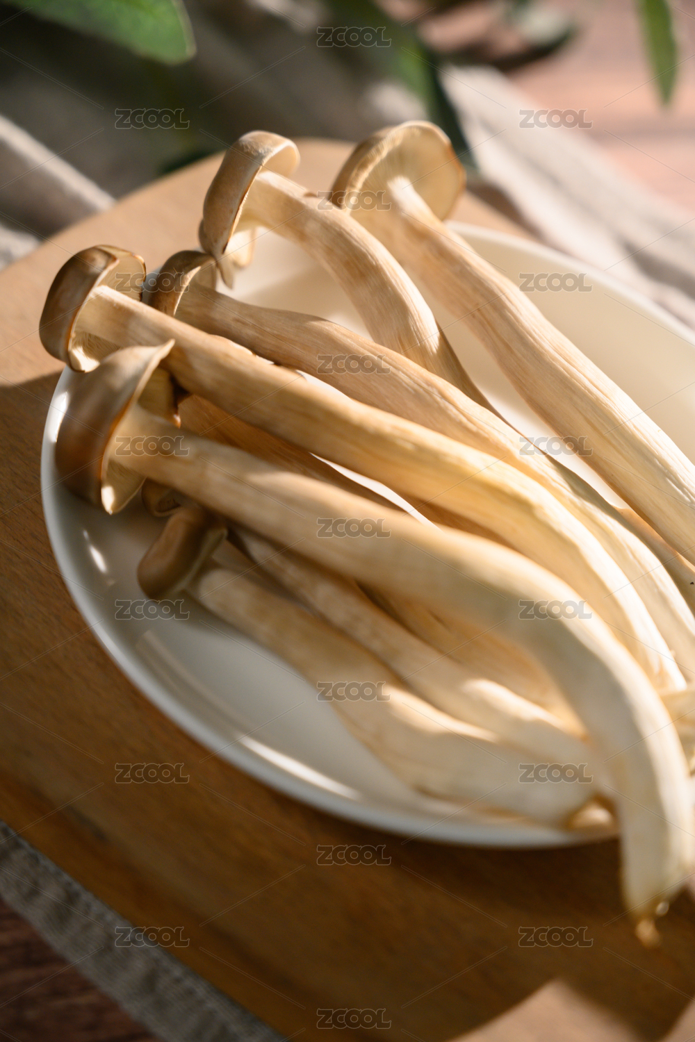 桌面上的盘子里的美味可口的新鲜鹿茸菇