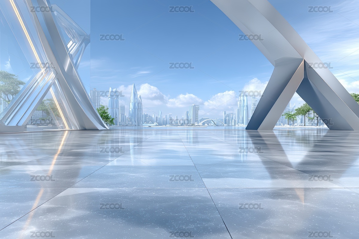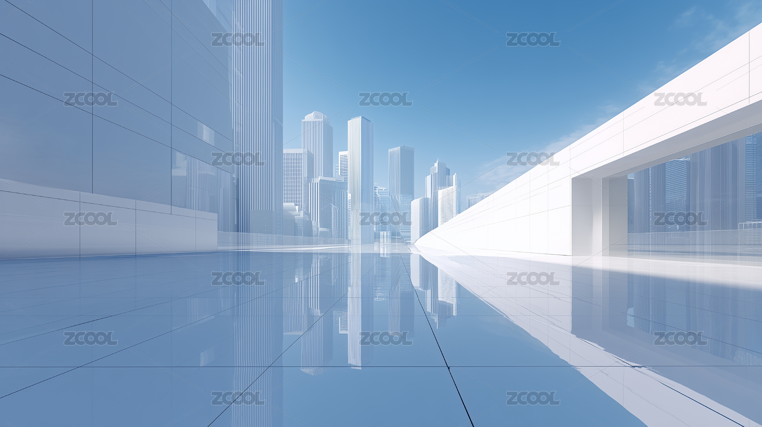 建筑,水面,蓝天,城市,高楼,反射,玻璃,天际线