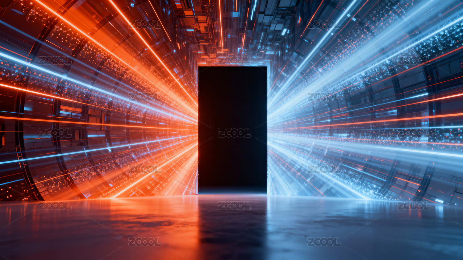 奇幻,未来,科技,蓝色,数字,山脉,之门,景象,光束