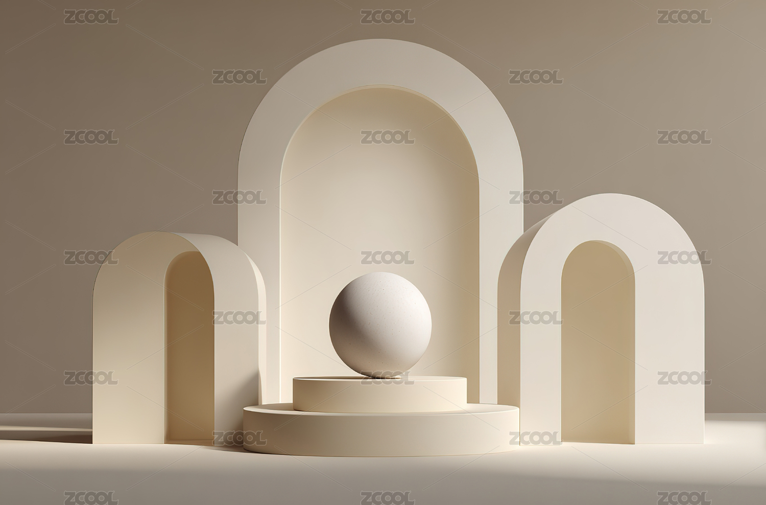 白色拱门与球体的几何构图
