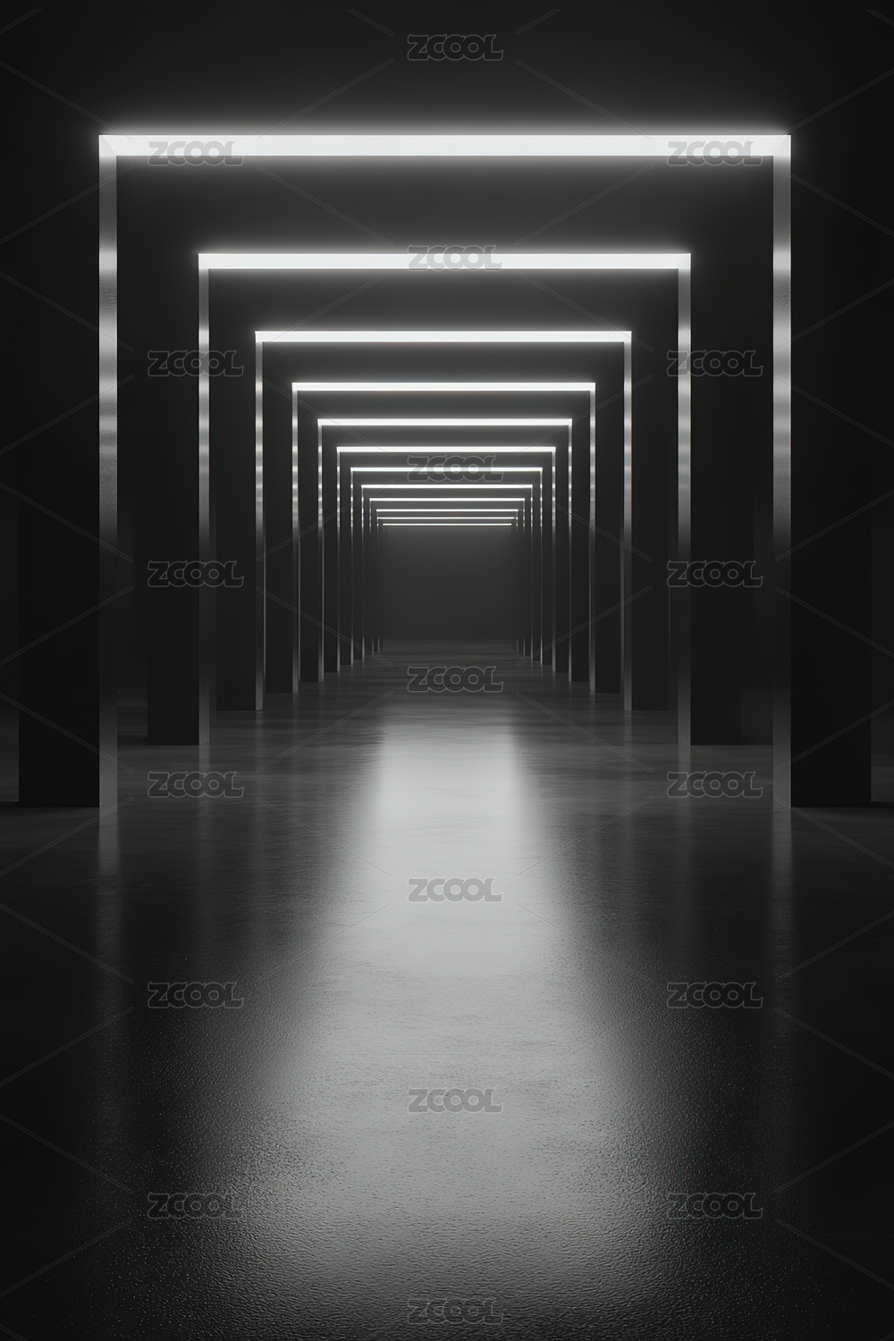 发光走廊的纵深透视