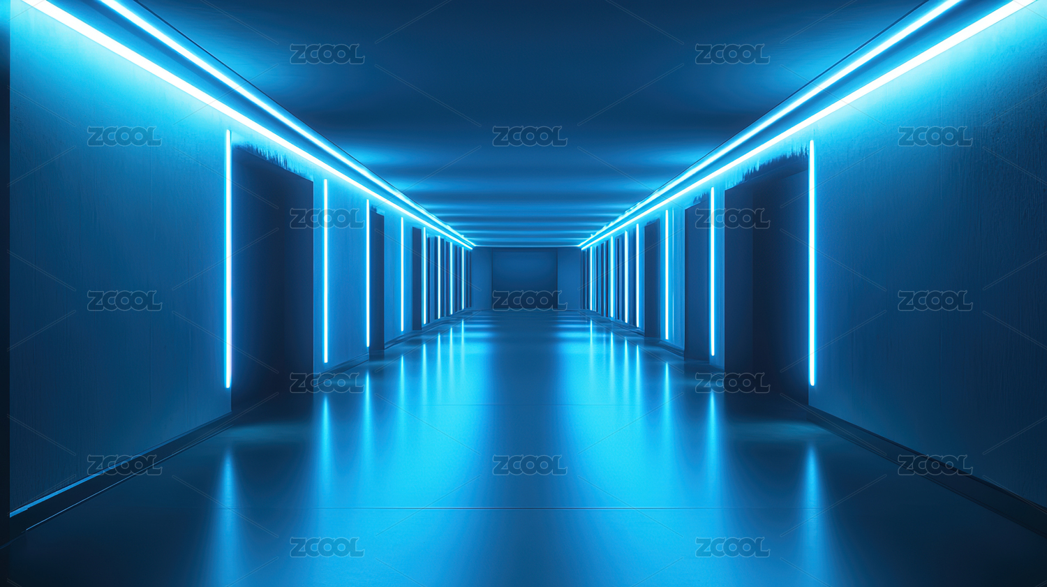 蓝色霓虹走廊无限延伸