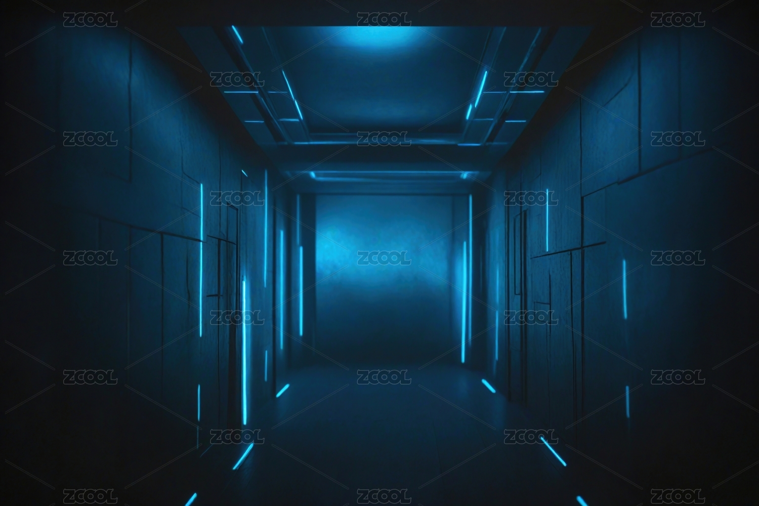 未来蓝色冷调走廊
