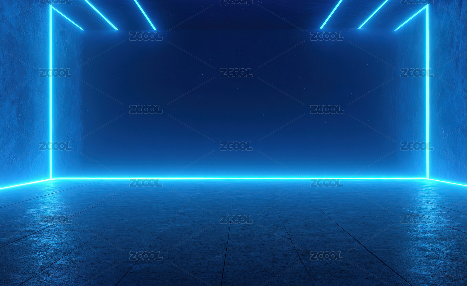 蓝色霓虹灯照亮的空旷房间