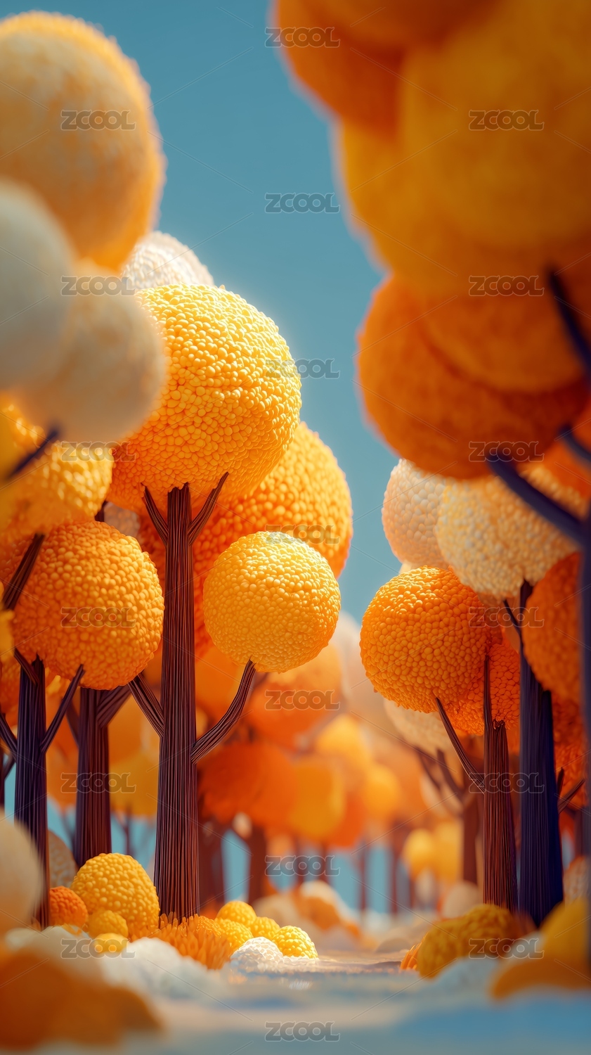 暖黄绒球植物梦幻立体场景艺术图