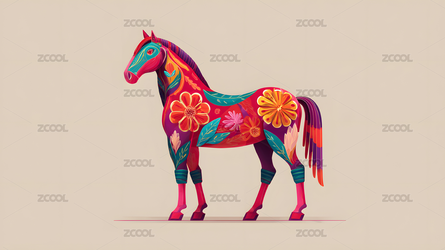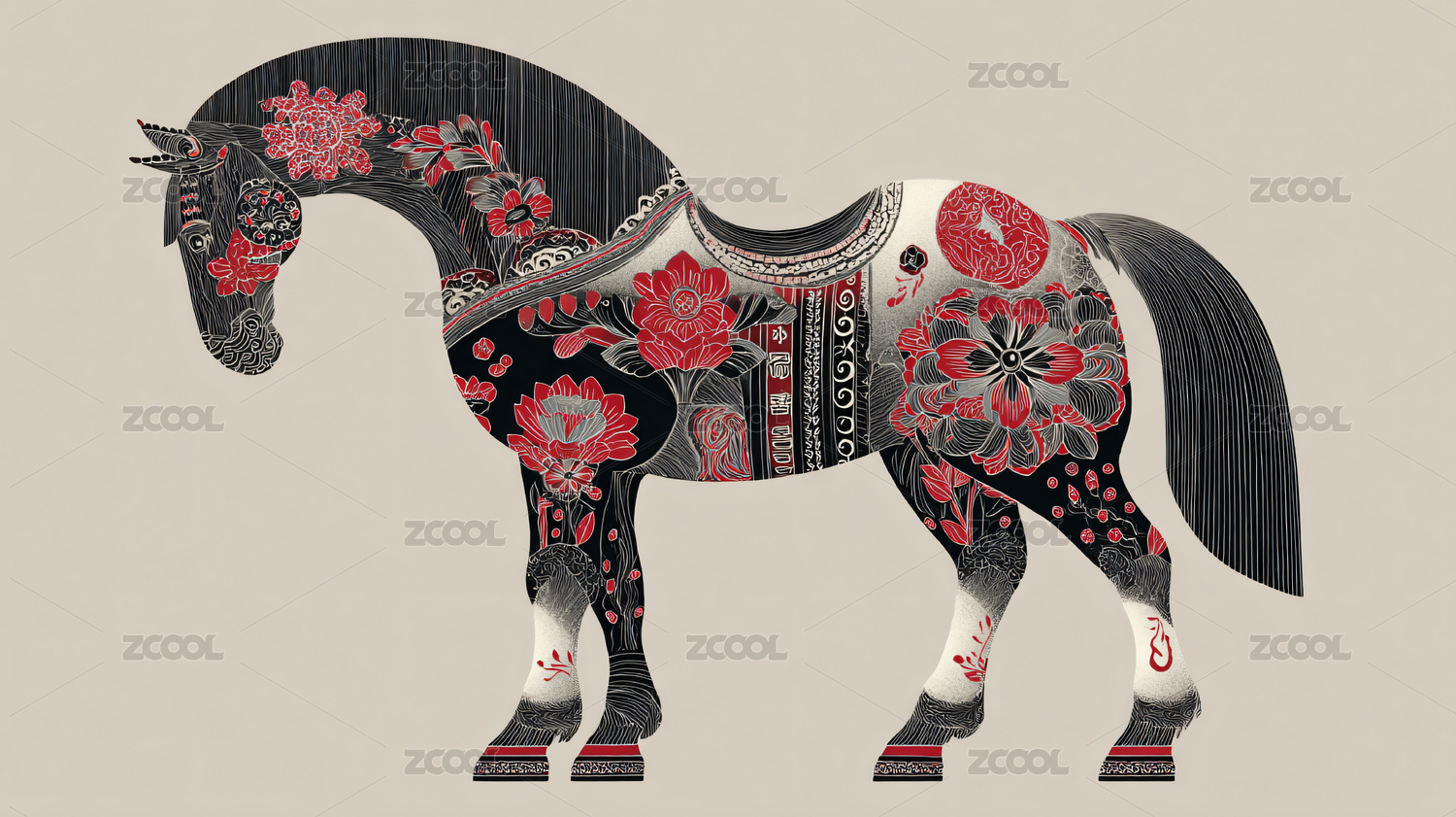 花布,拼接,马,艺术,插画,设计,创意,视觉,质感,装饰