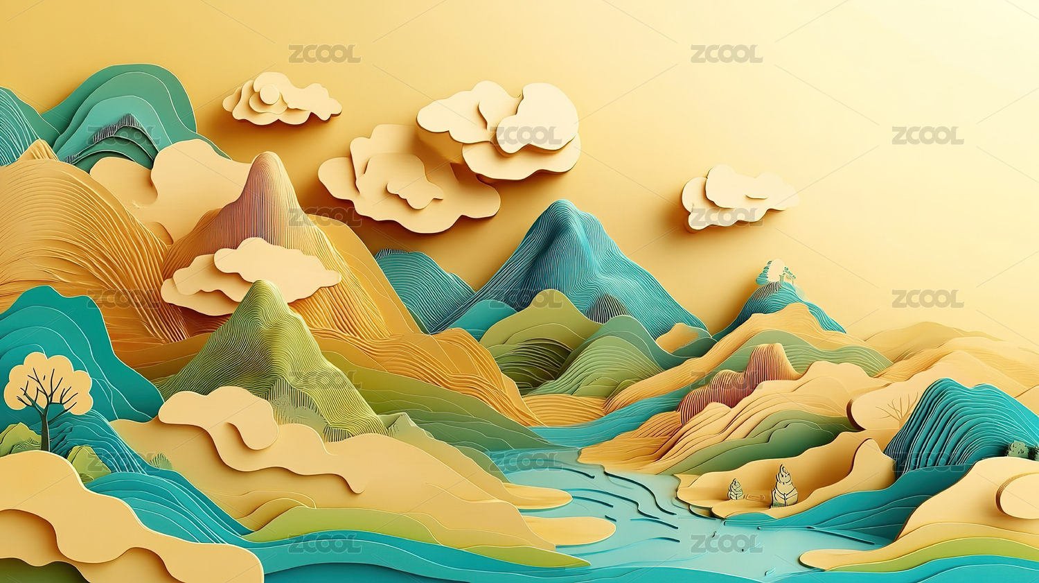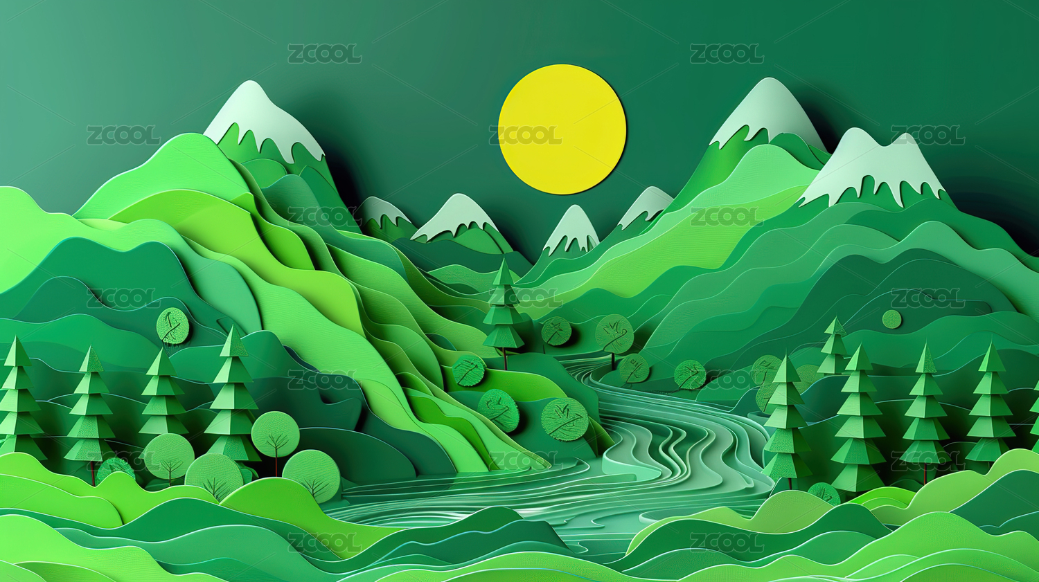 纸雕风格山水自然景观