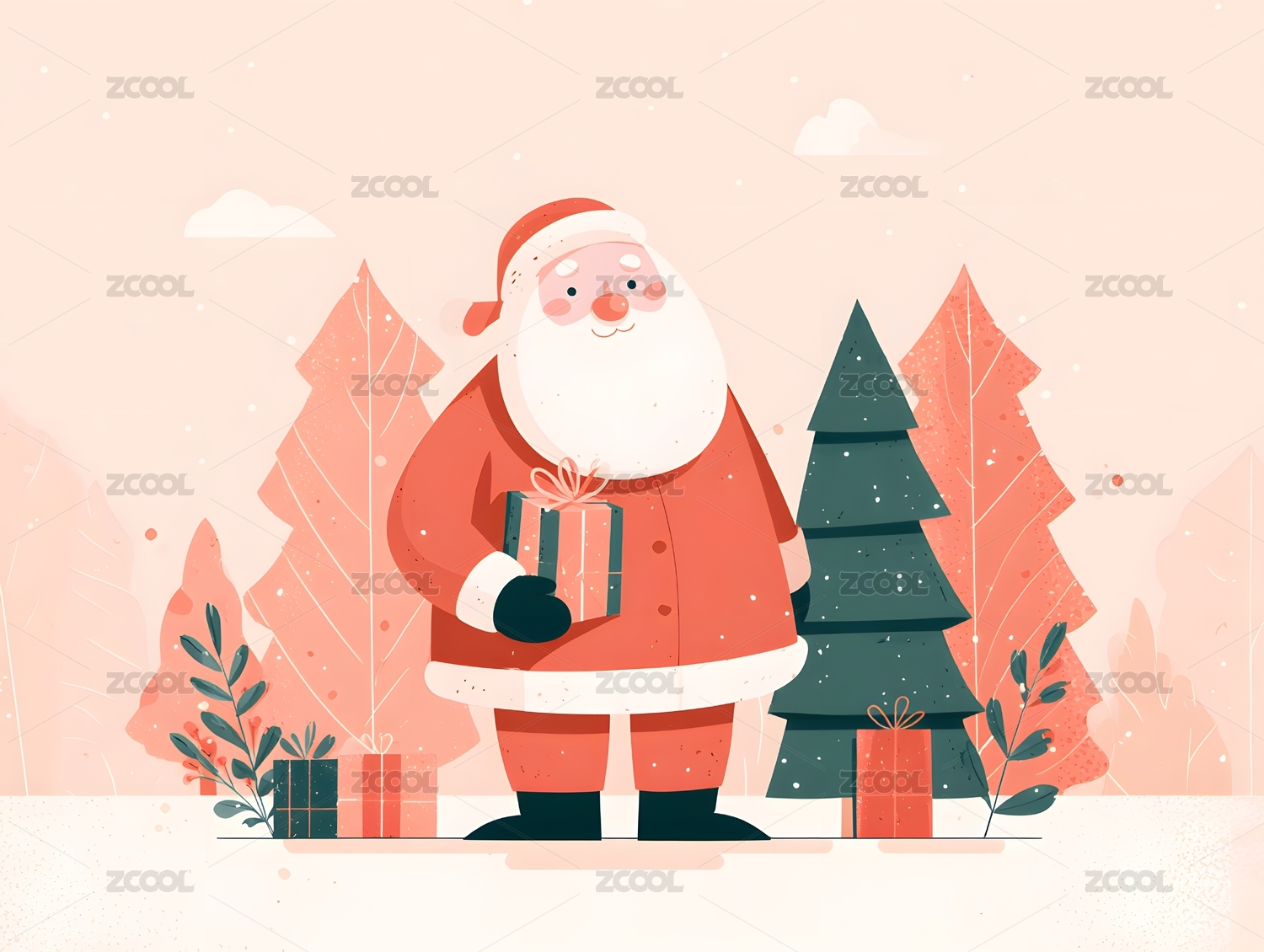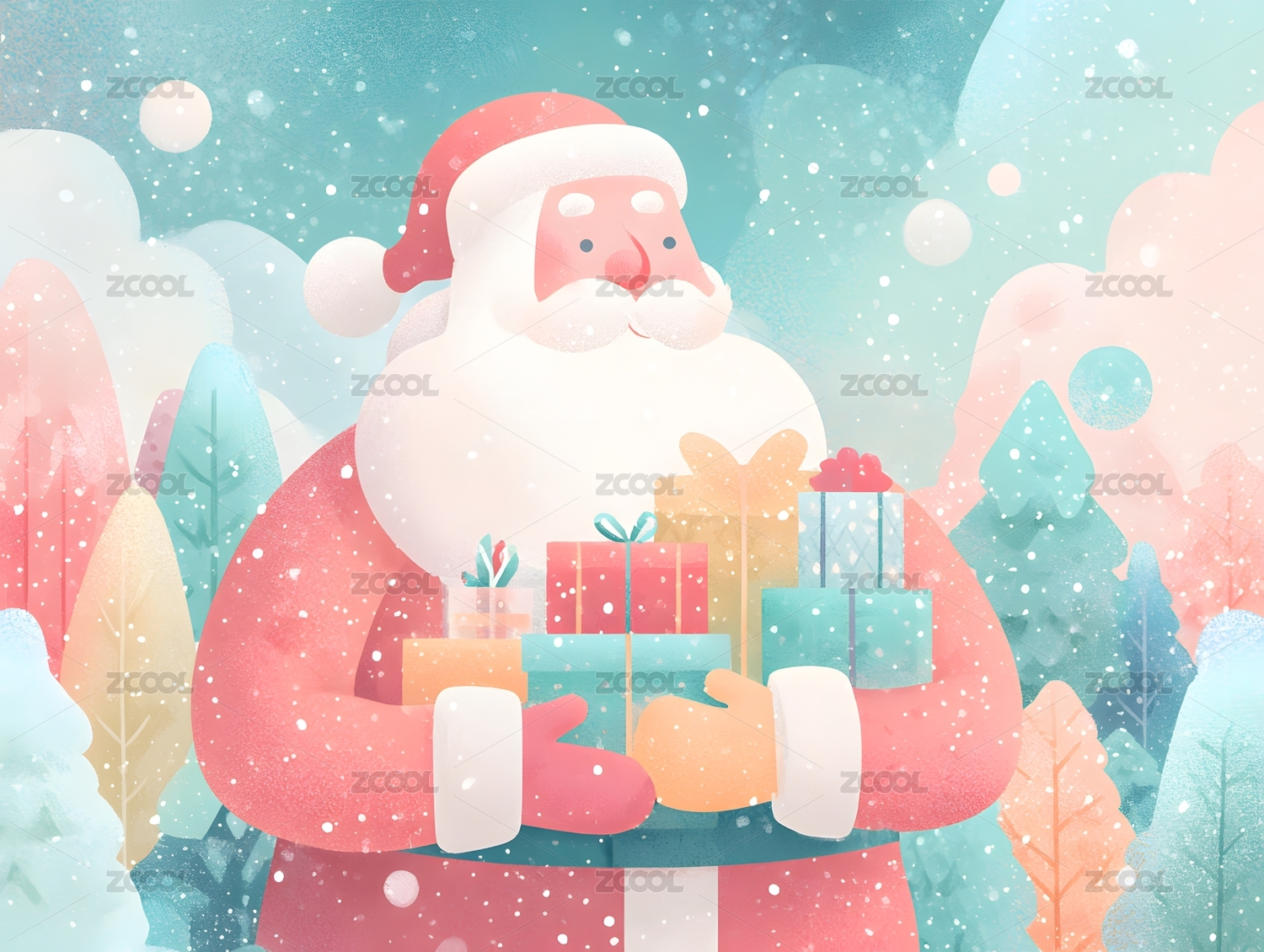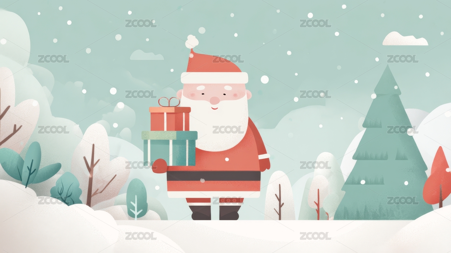 圣诞老人送礼物圣诞节快乐节日礼盒三维插画