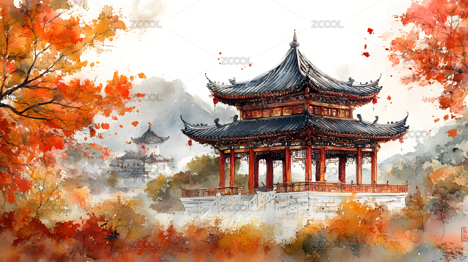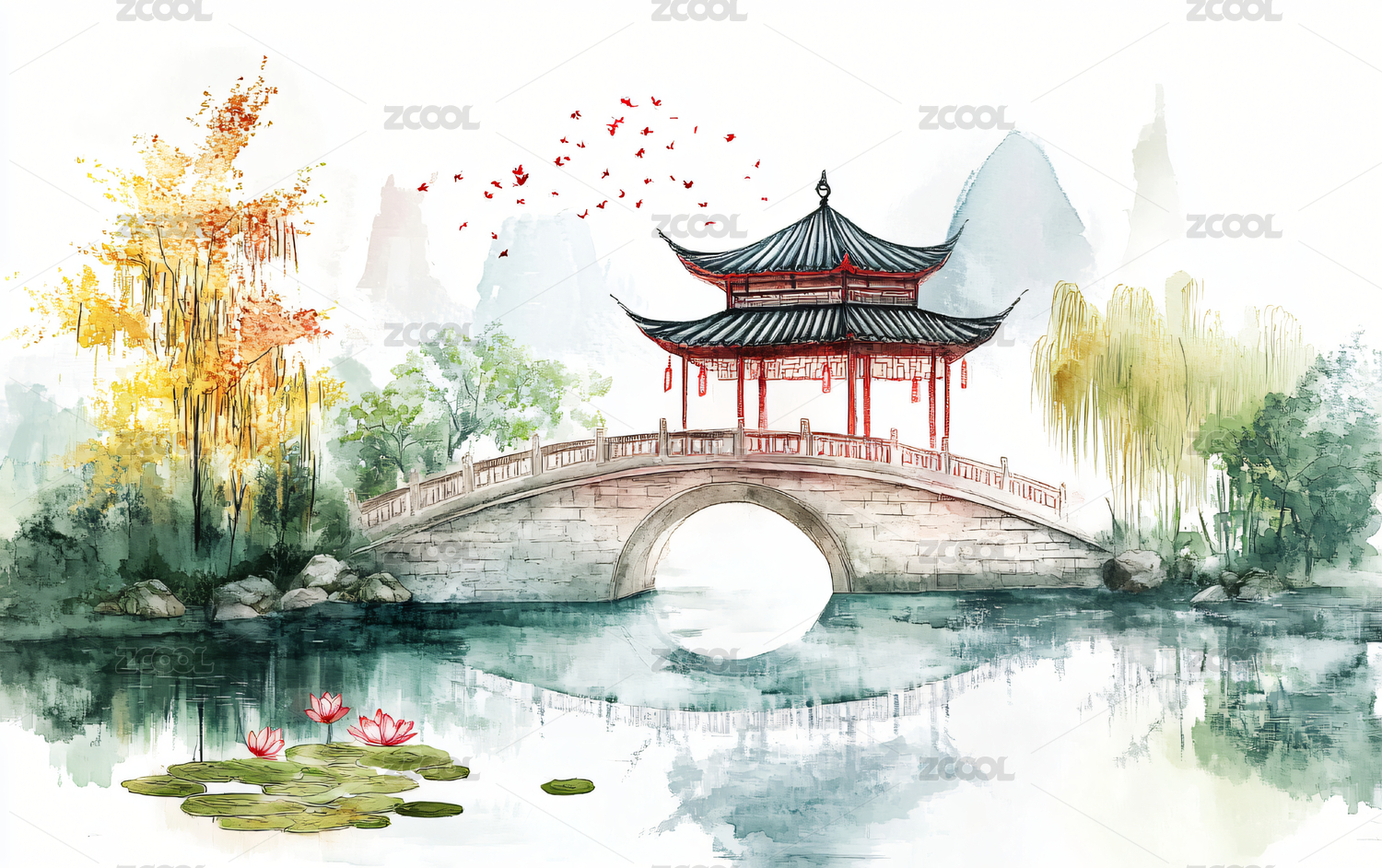 风景,建筑,树木,传统,文化,艺术,设计,中国,绘画,颜色