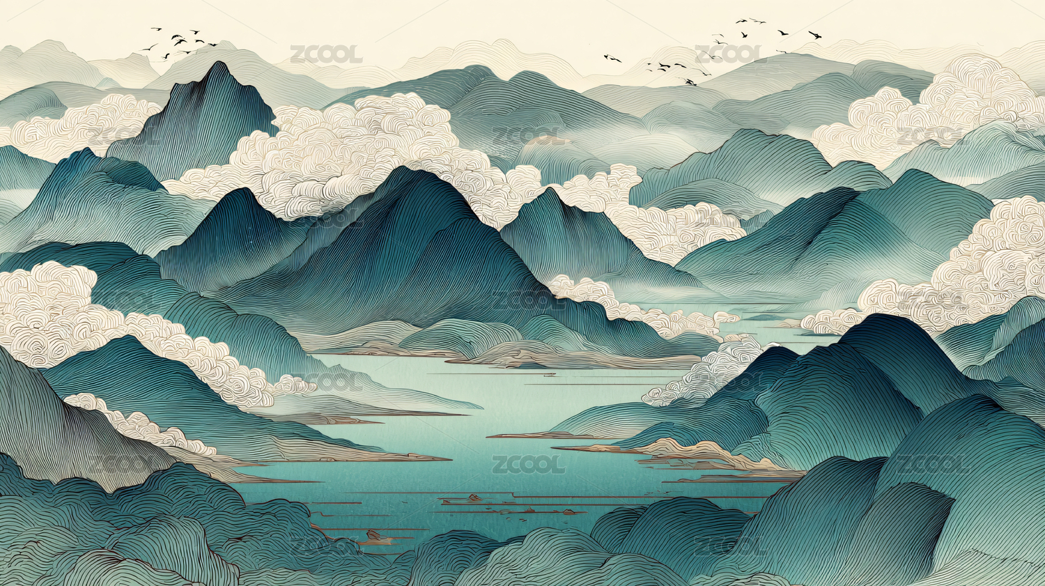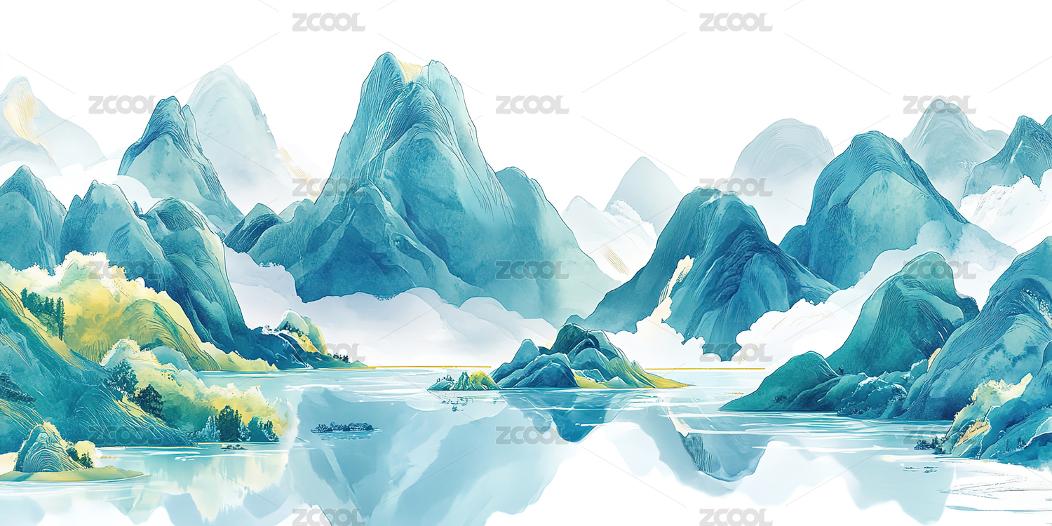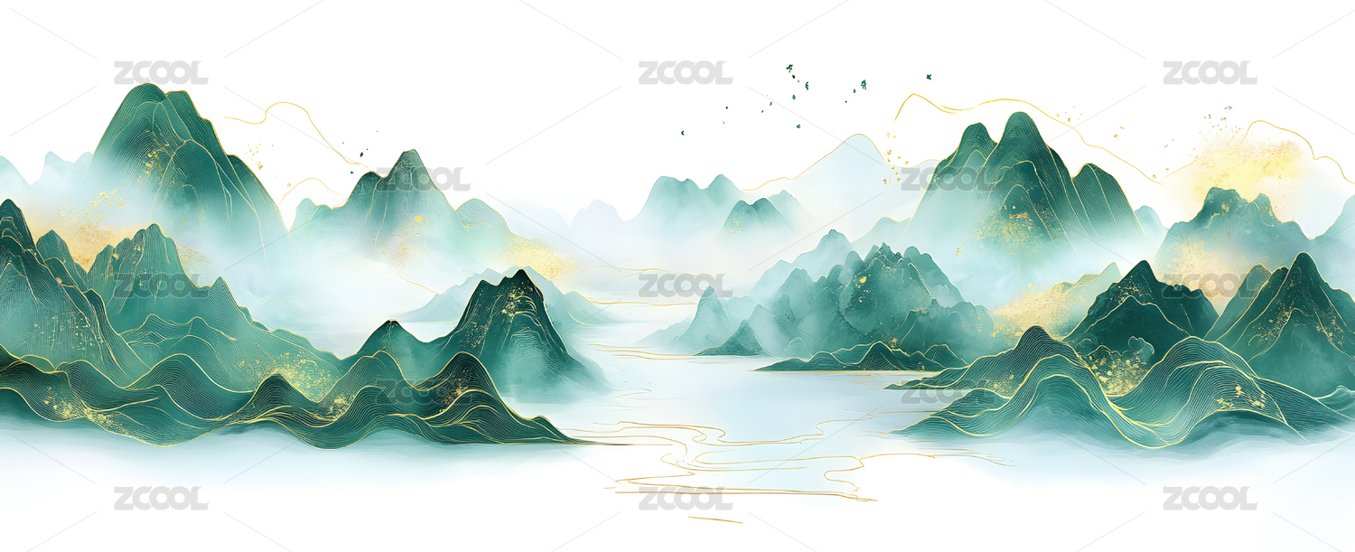 山水,云纹,青绿,国风,质感,传统,商业,素材,场景,装饰