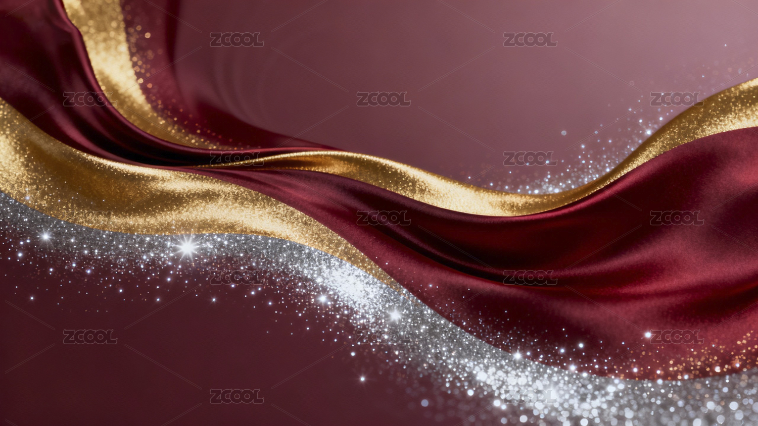 酒红绸缎金色丝带背景