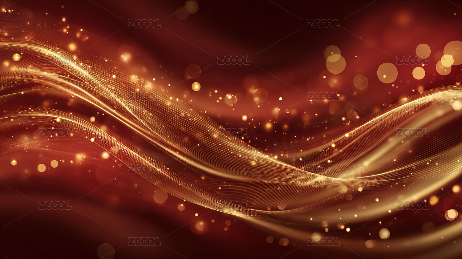 金色光点波浪红色背景
