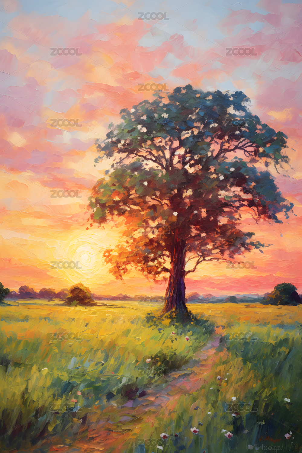 树木户外风景油画海报