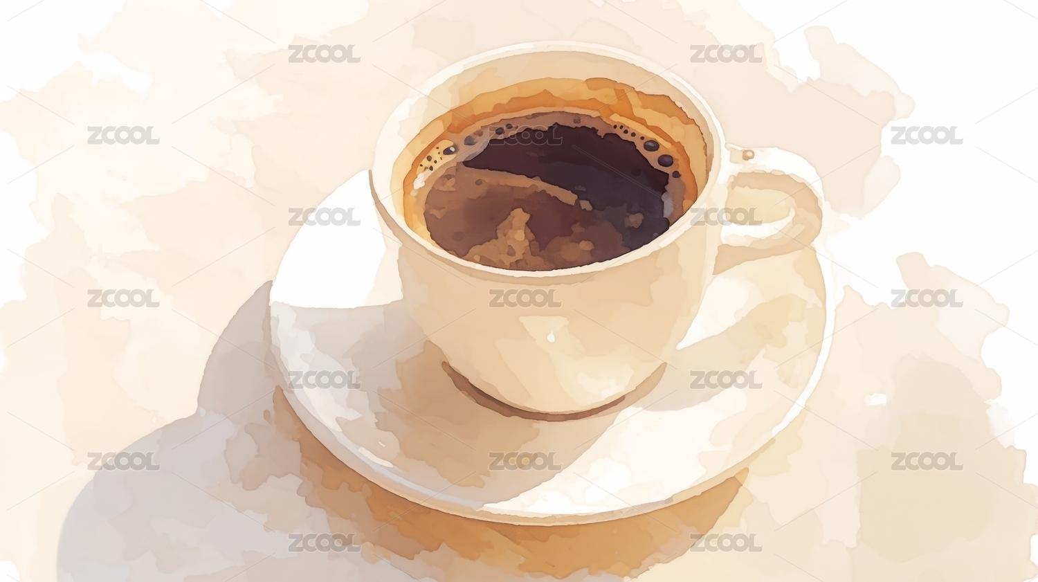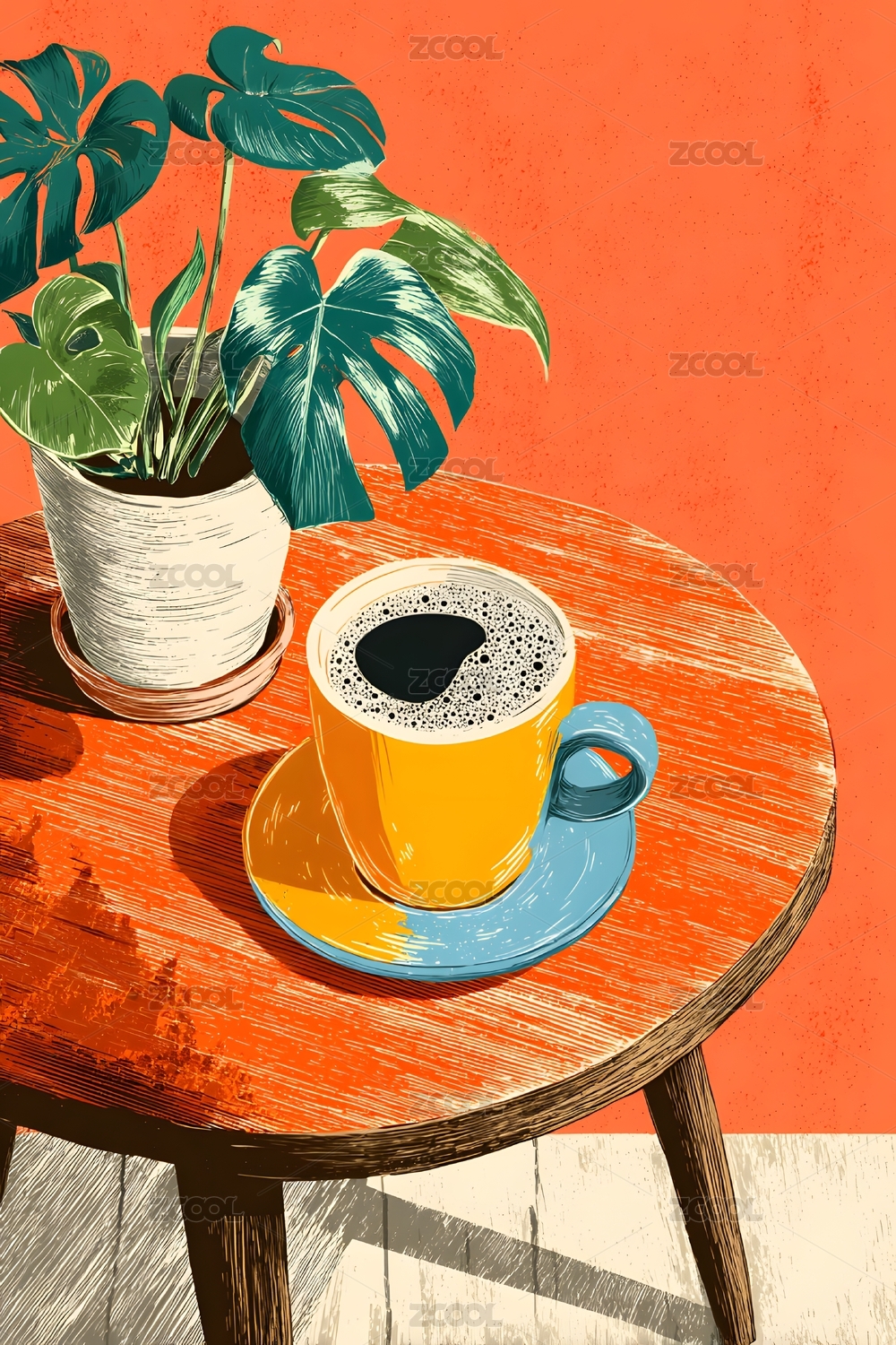 桌面上杯中的咖啡奶茶3D卡通食品插画