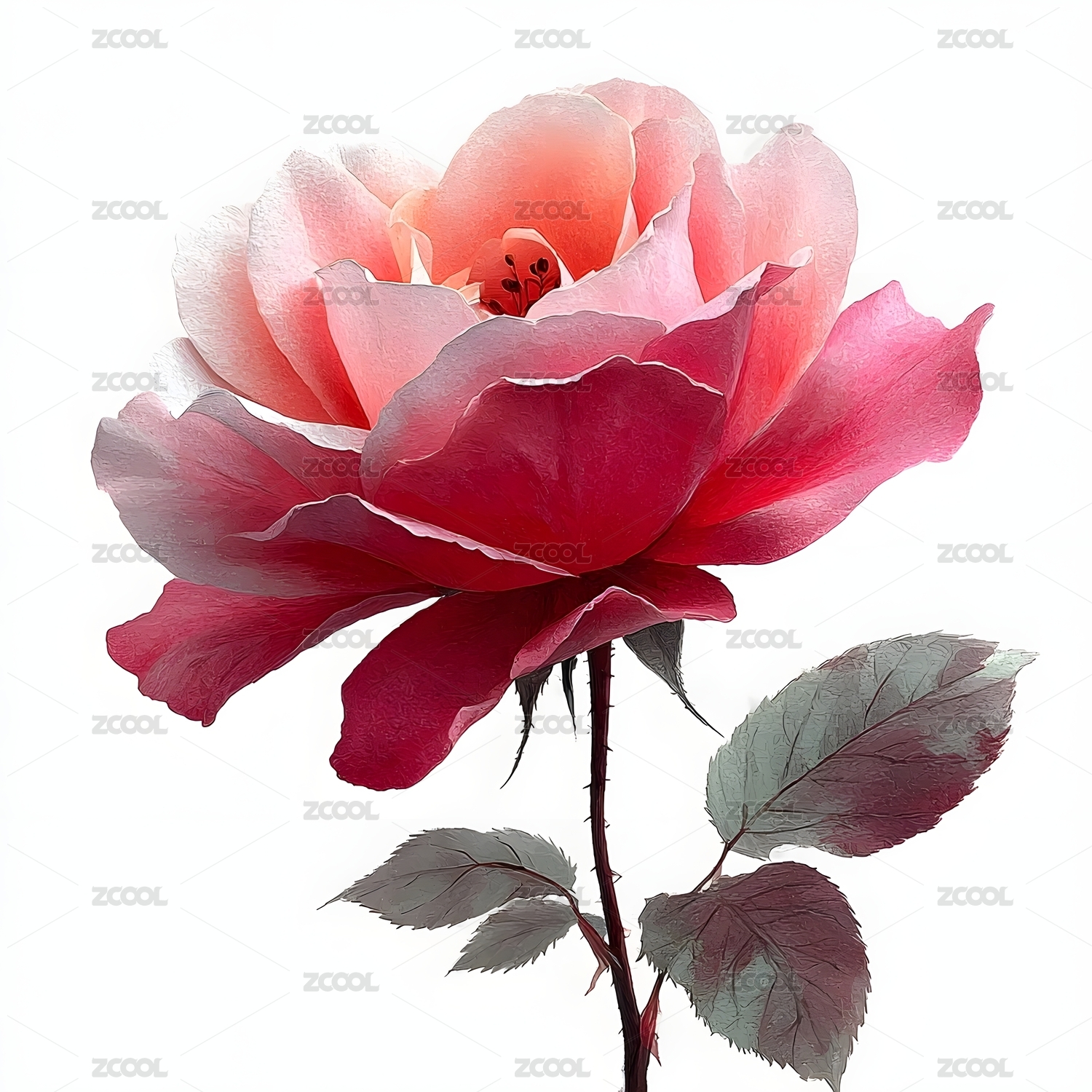 水彩风格盛开的玫瑰花