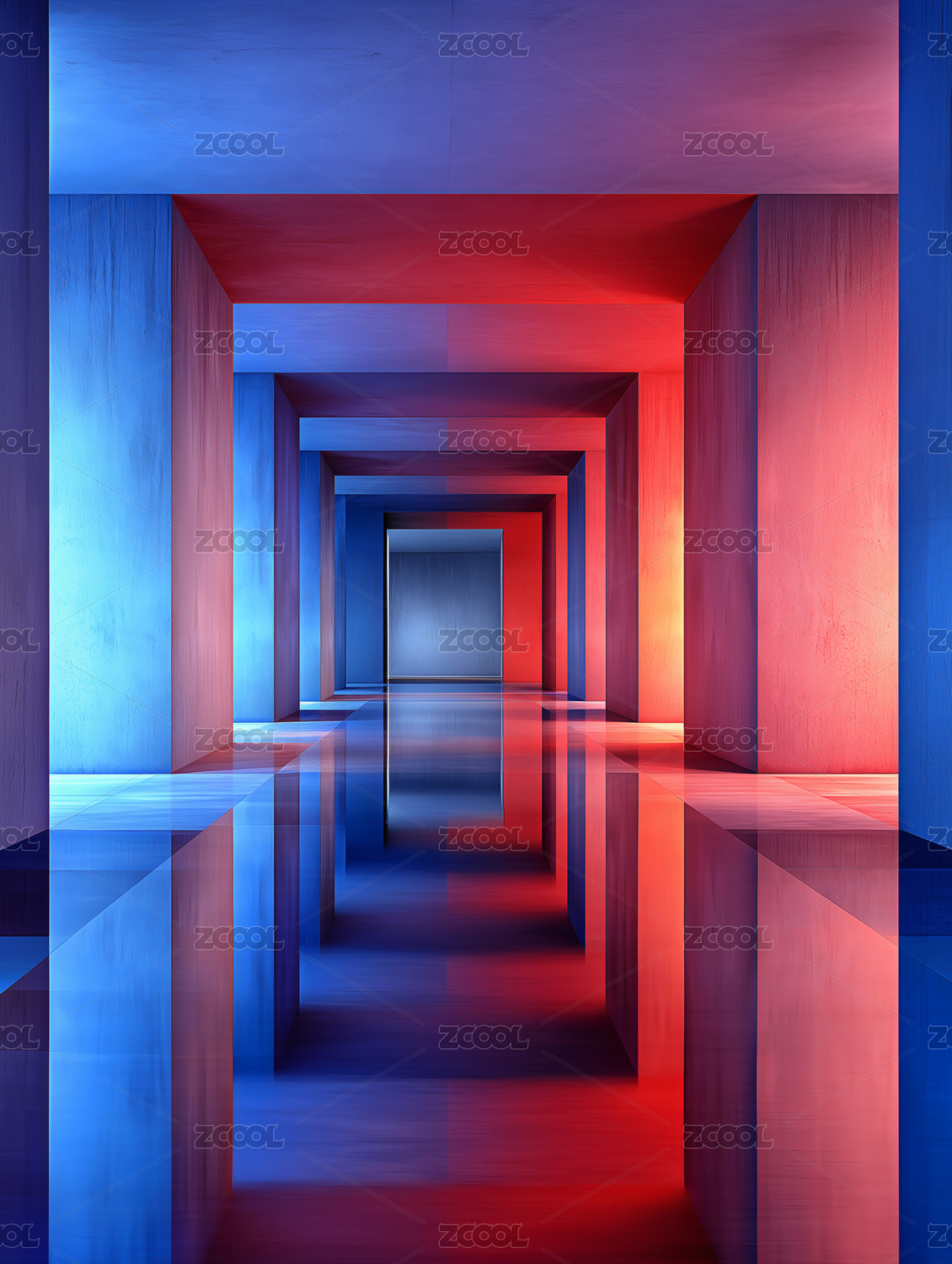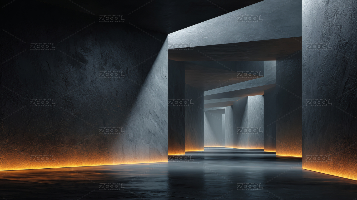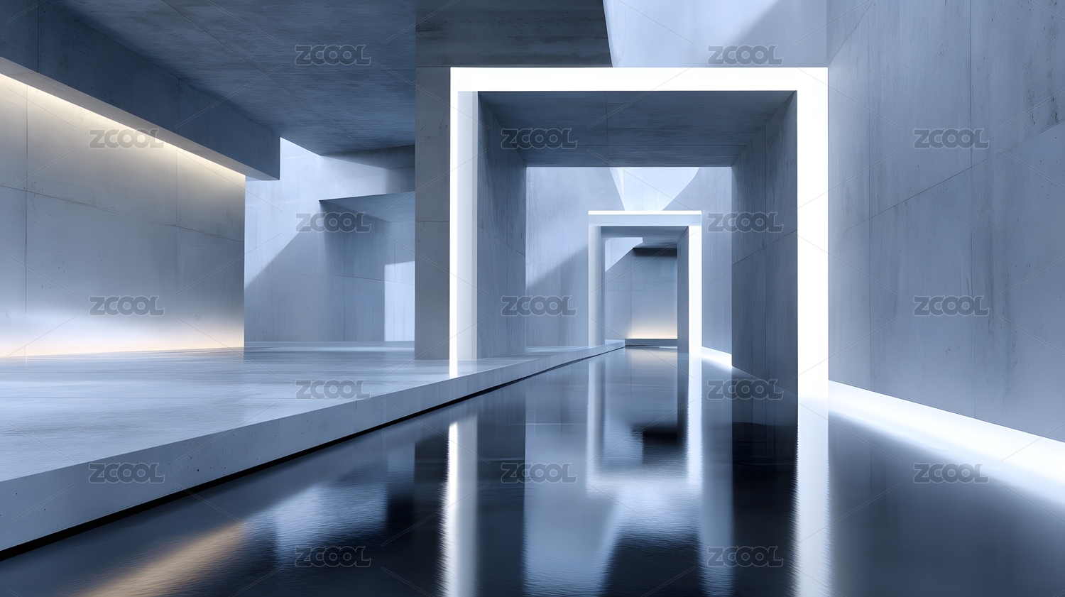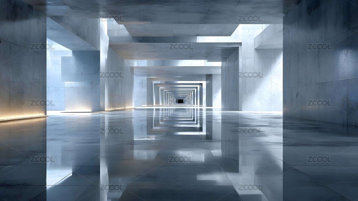 现代混凝土几何空间走廊
