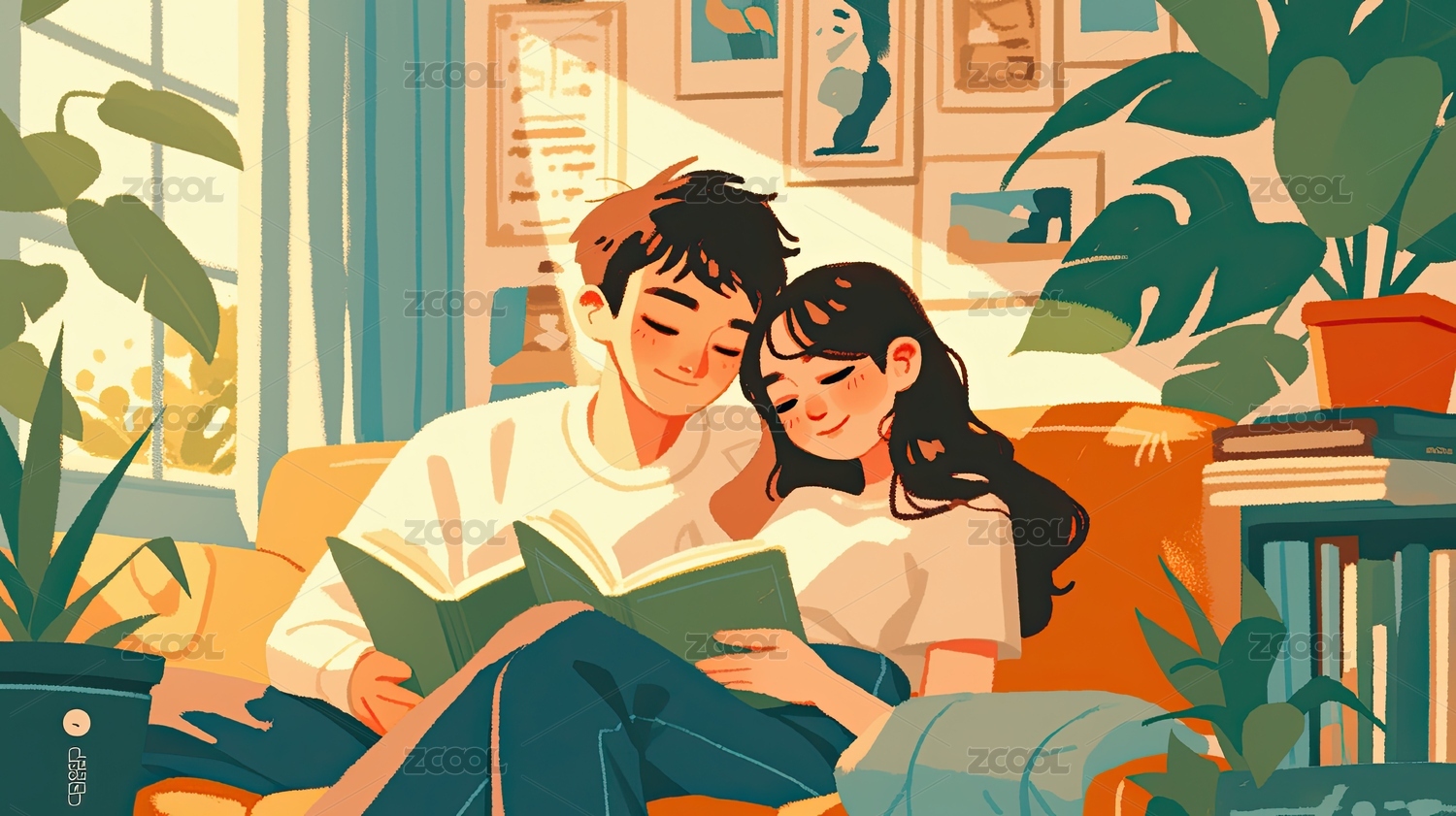 艺术,温馨,浪漫,背景,简约,治愈,微笑,漫画,手绘,插画