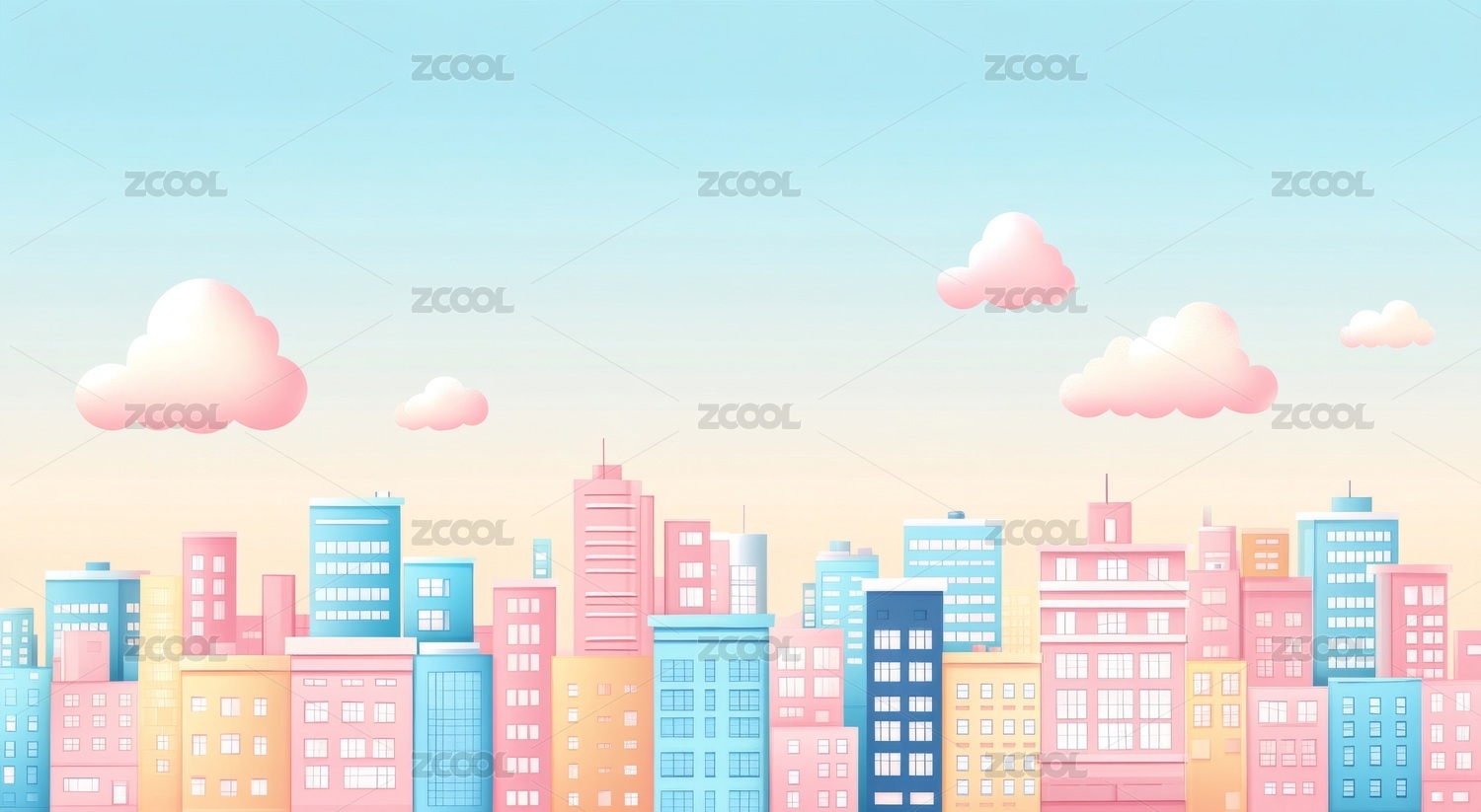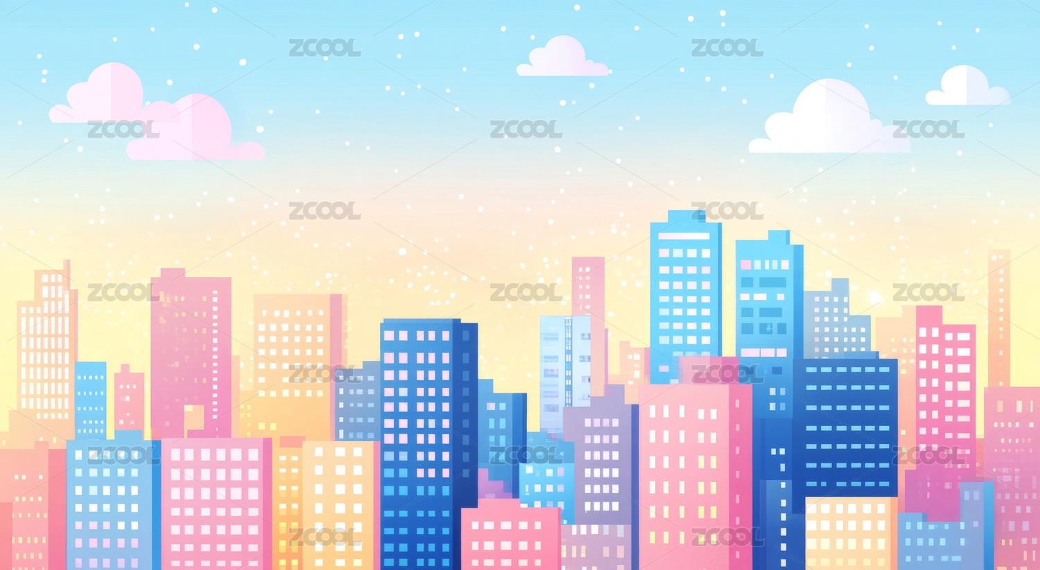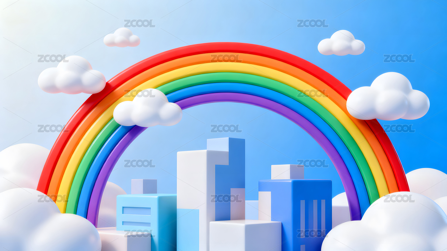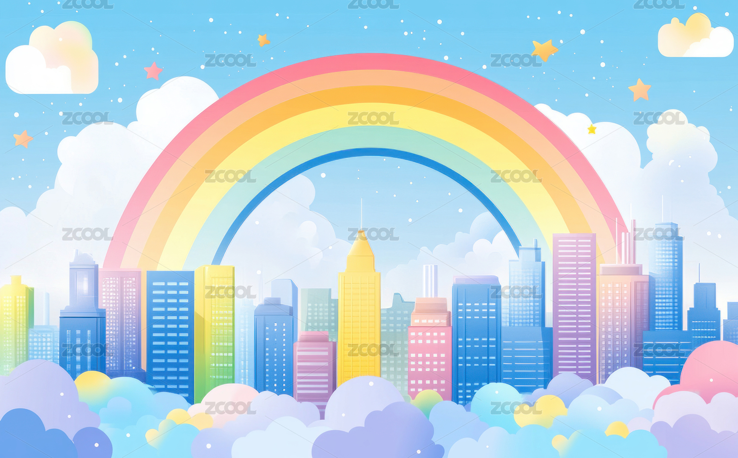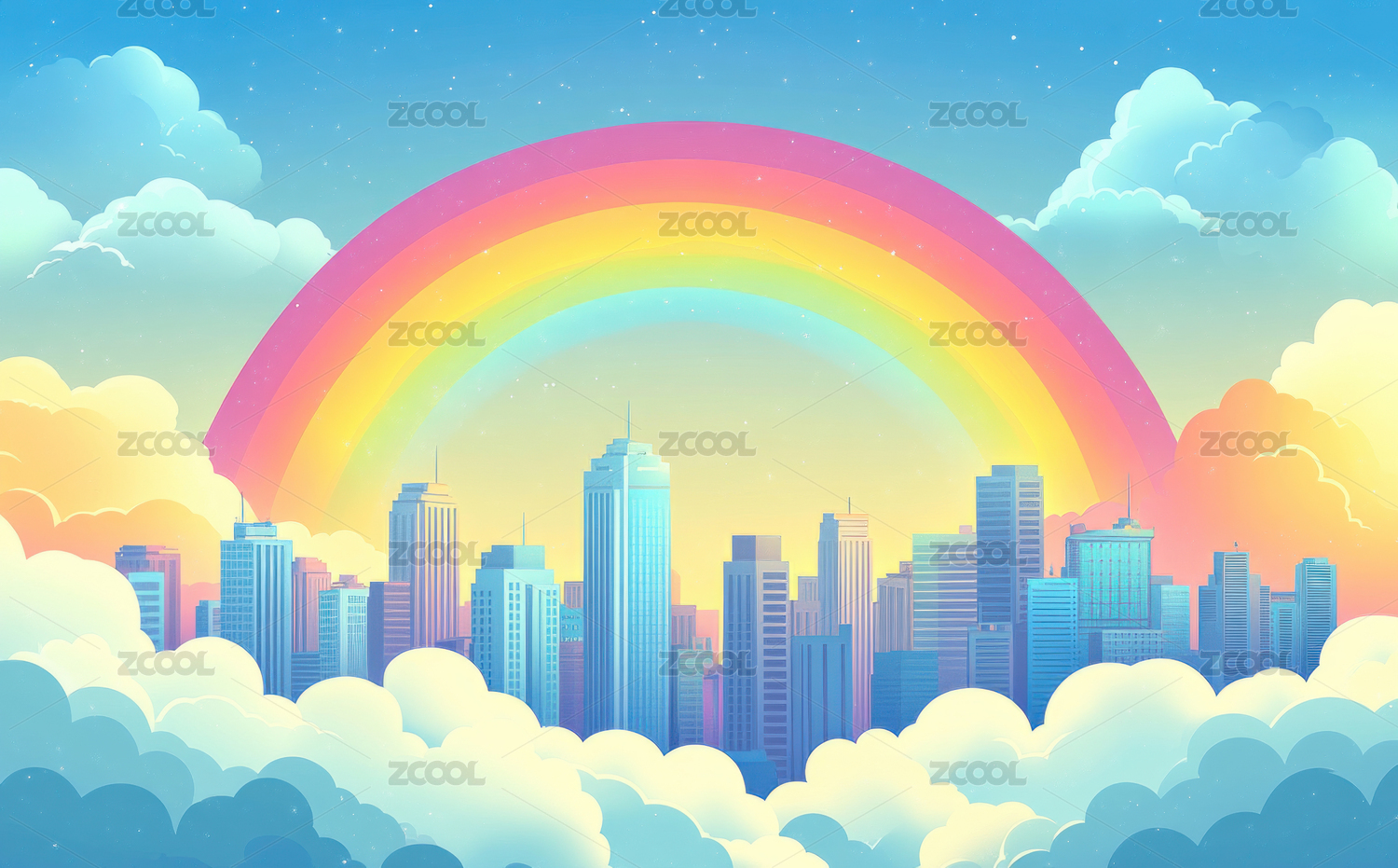 彩虹,城市,天空,建筑,彩色,云彩,设计,插画,背景,动漫