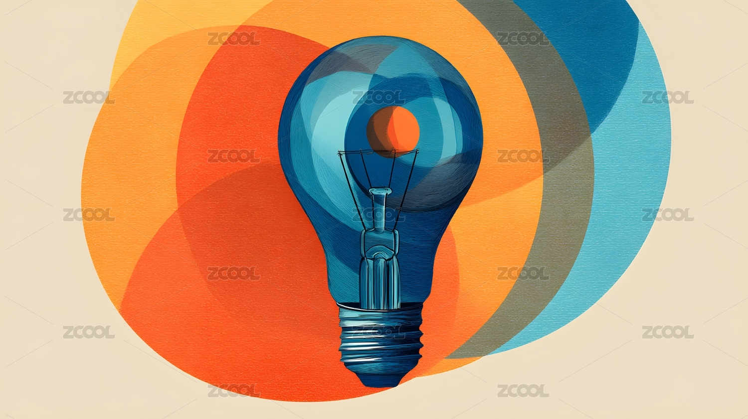 橙色,蓝色,活力,插画,艺术,极简,光影,明亮,数字,抽象