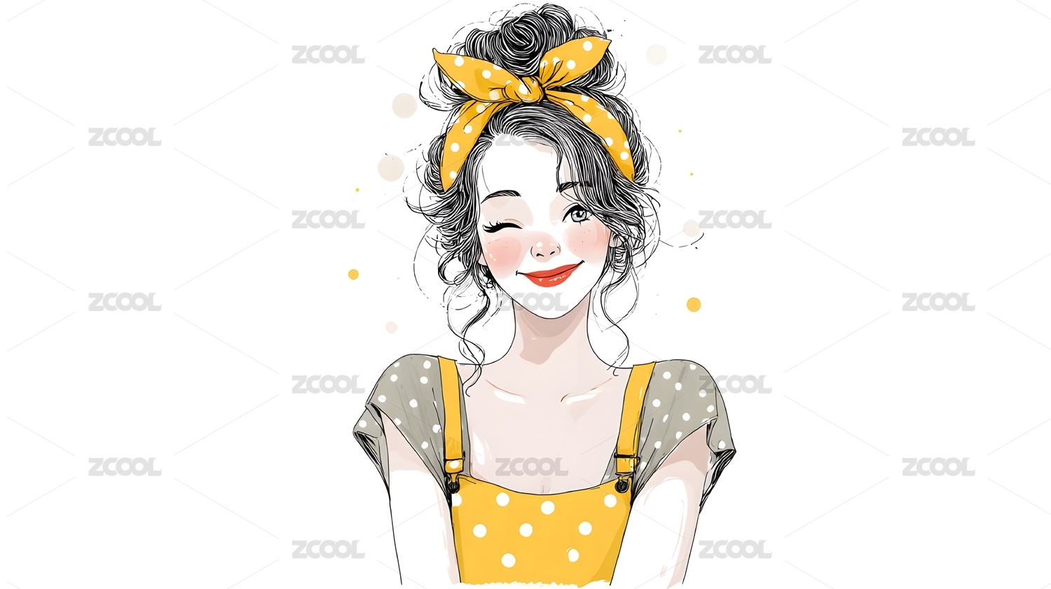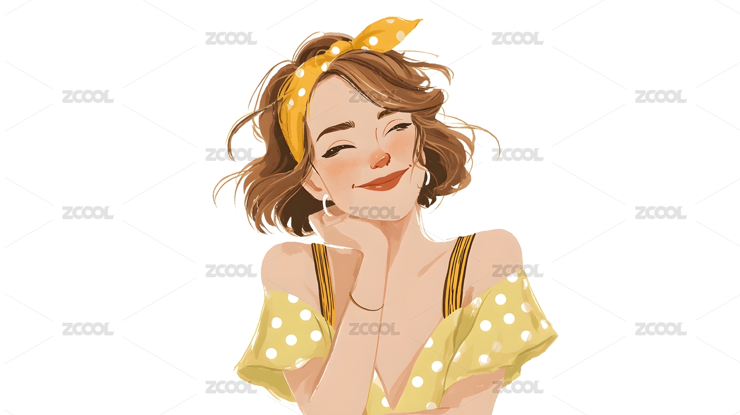 黄衣女子头像插画
