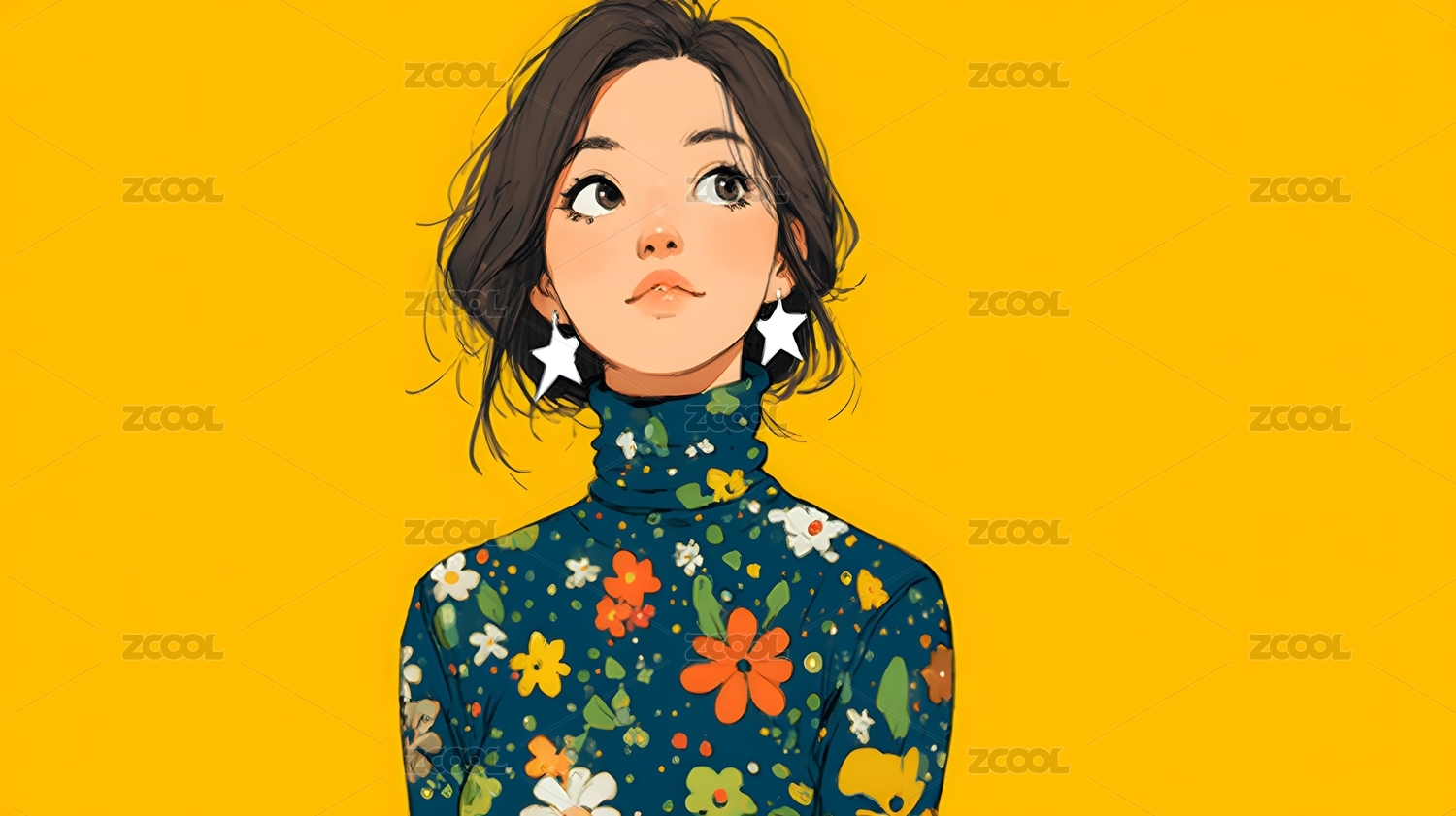 少女花衣黄背景插画